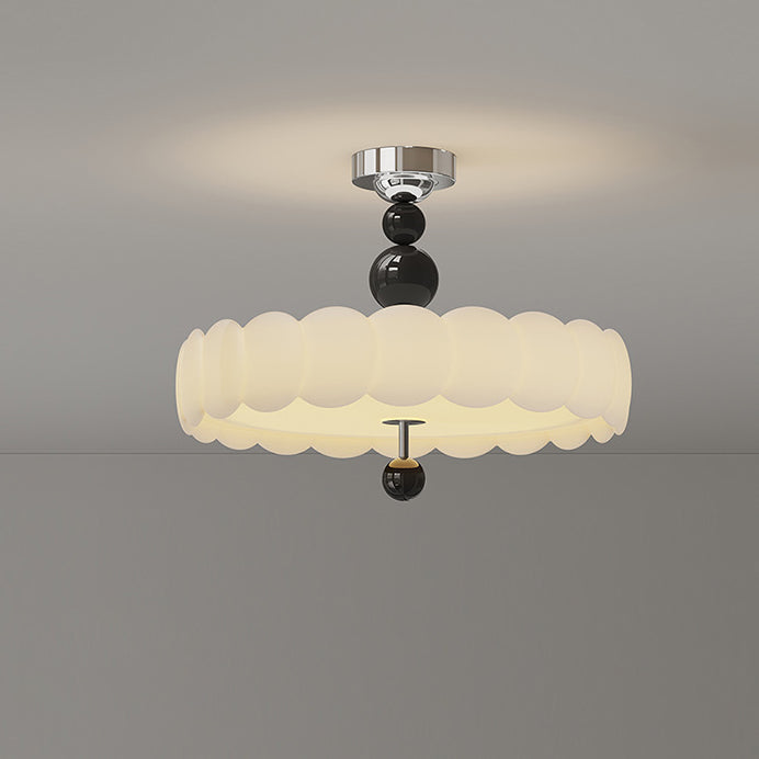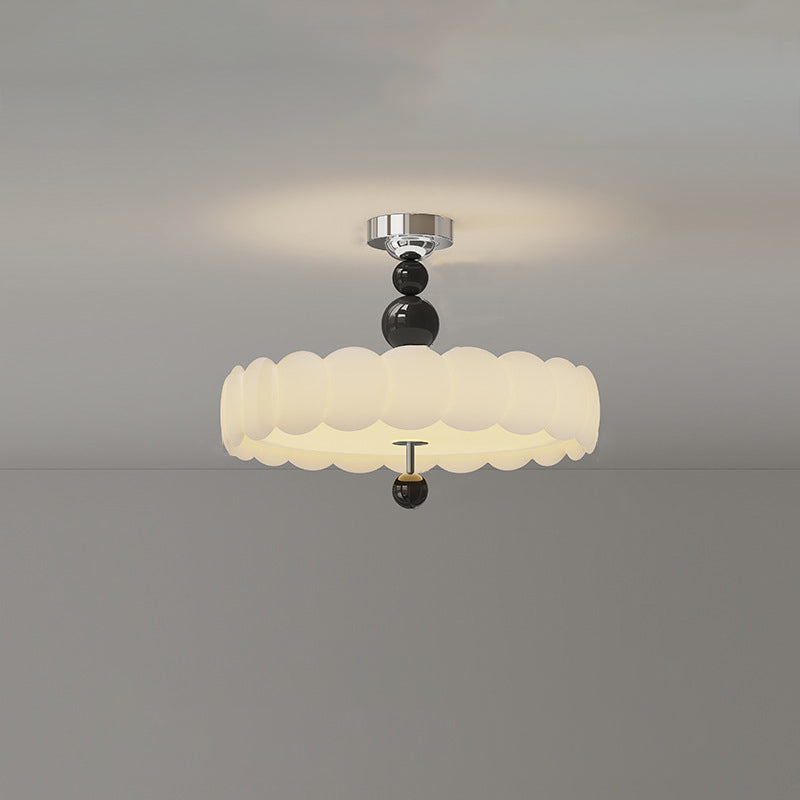Traditional French Iron PE Cloud Wave Round LED Semi-Flush Mount Ceiling Light For Dining Room & Living Room