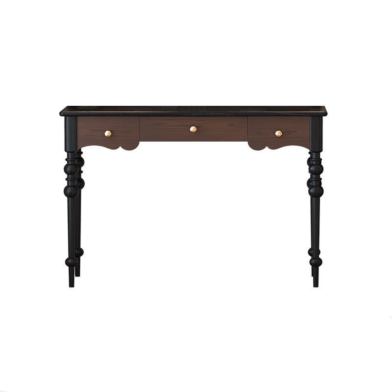 Traditional French Oak Copper Rectangular Roman Column Desk & Chair Set For Home Office