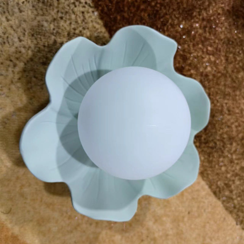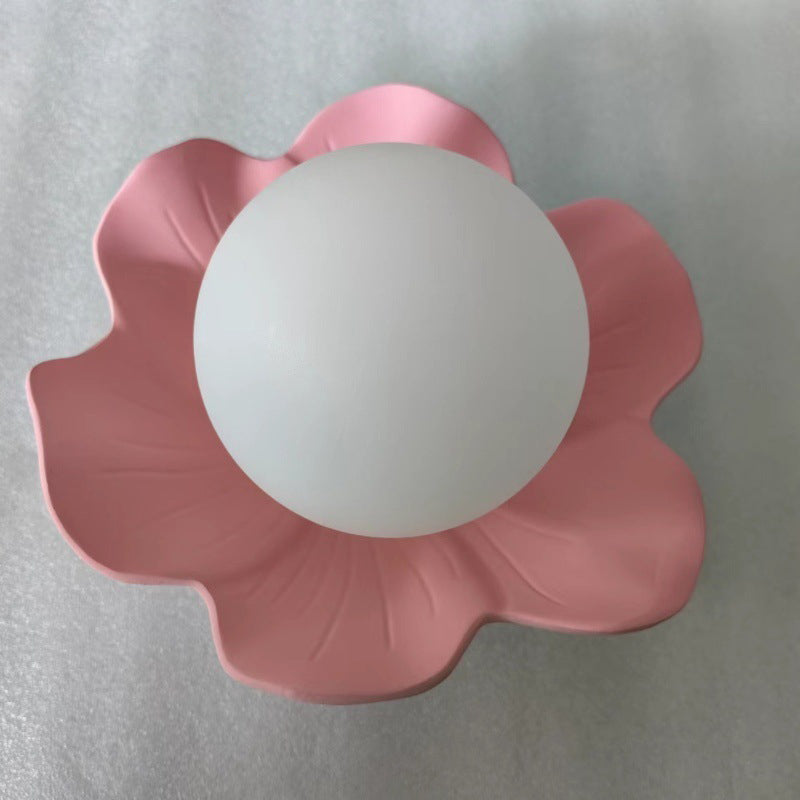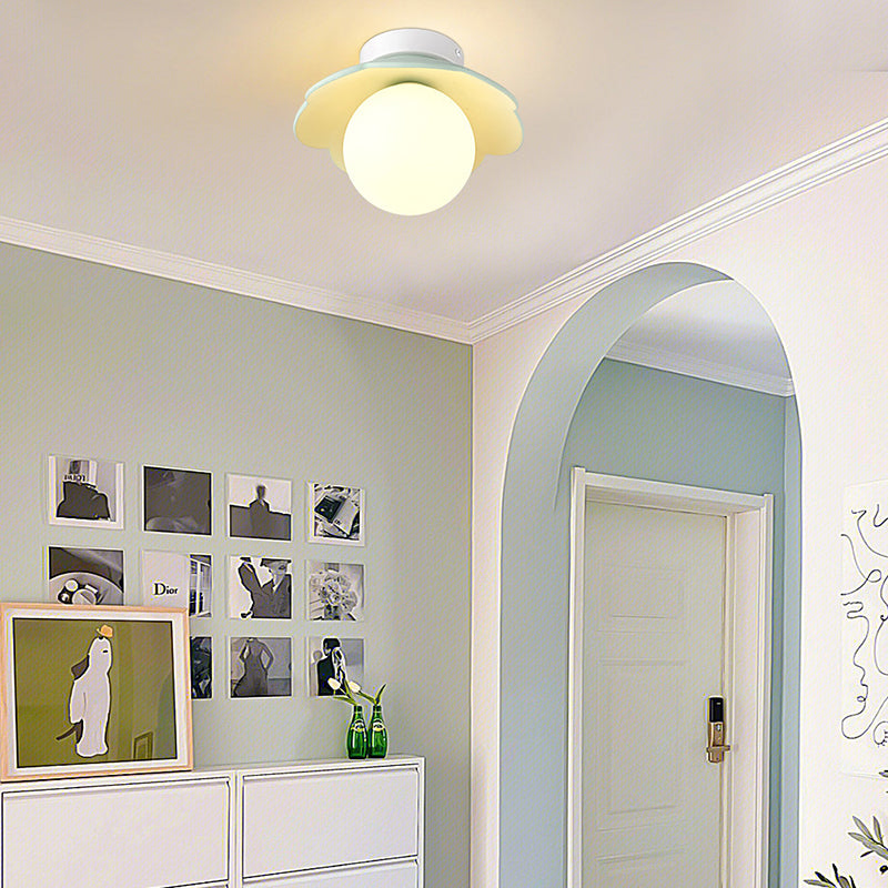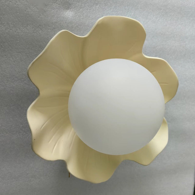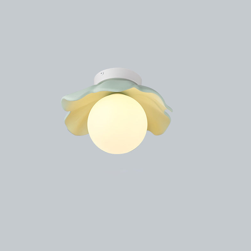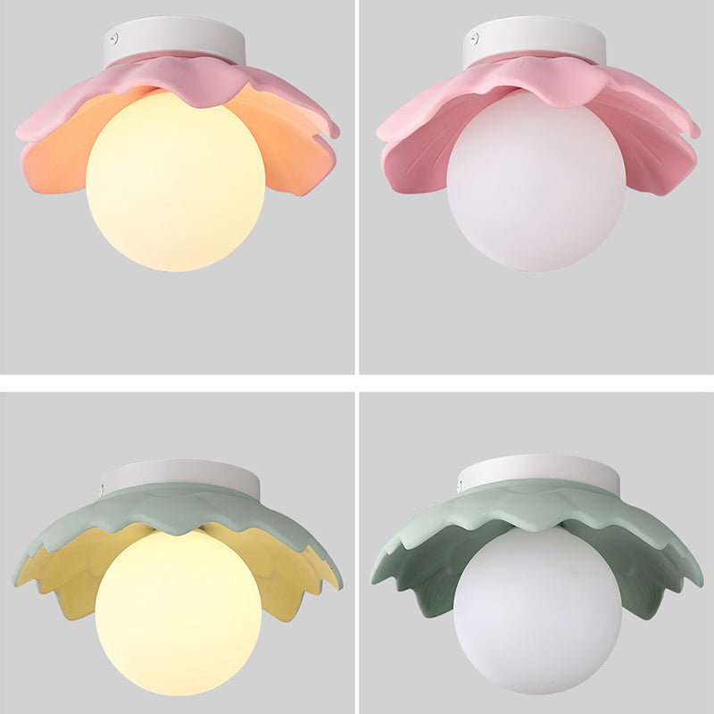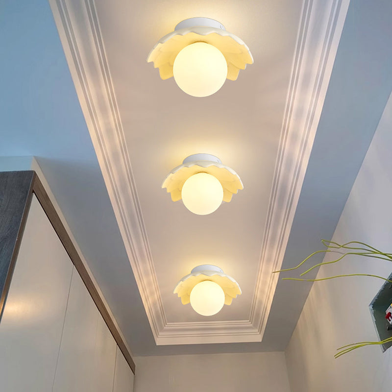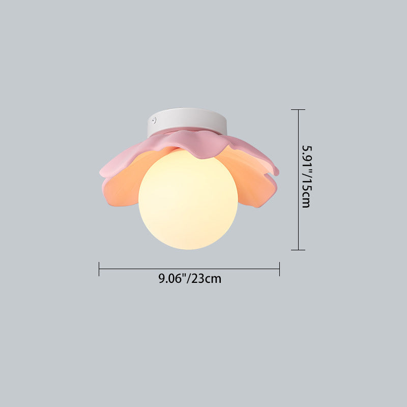 Traditional French Resin Flower PE Ball Shade 1-Light Semi-Flush Mount Ceiling Light For Living Room