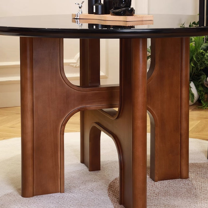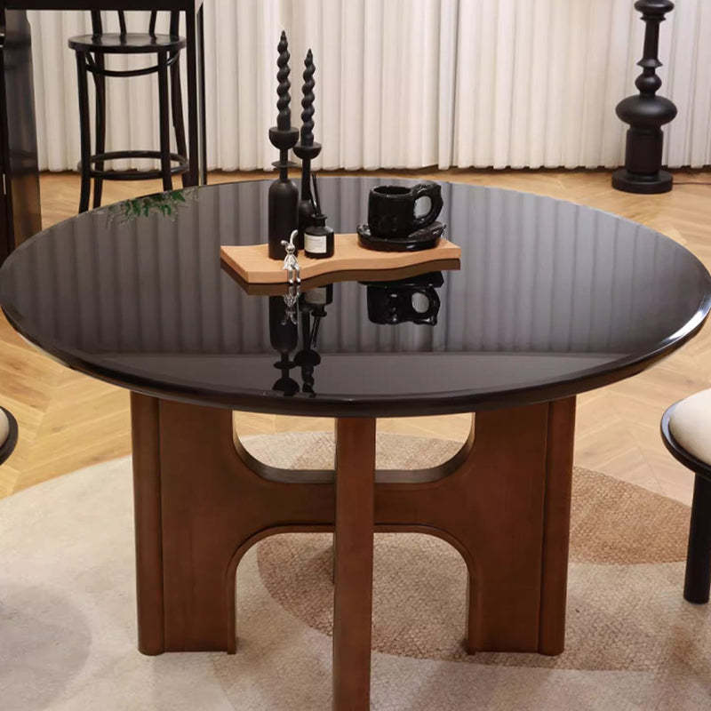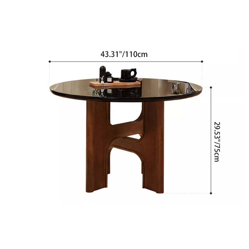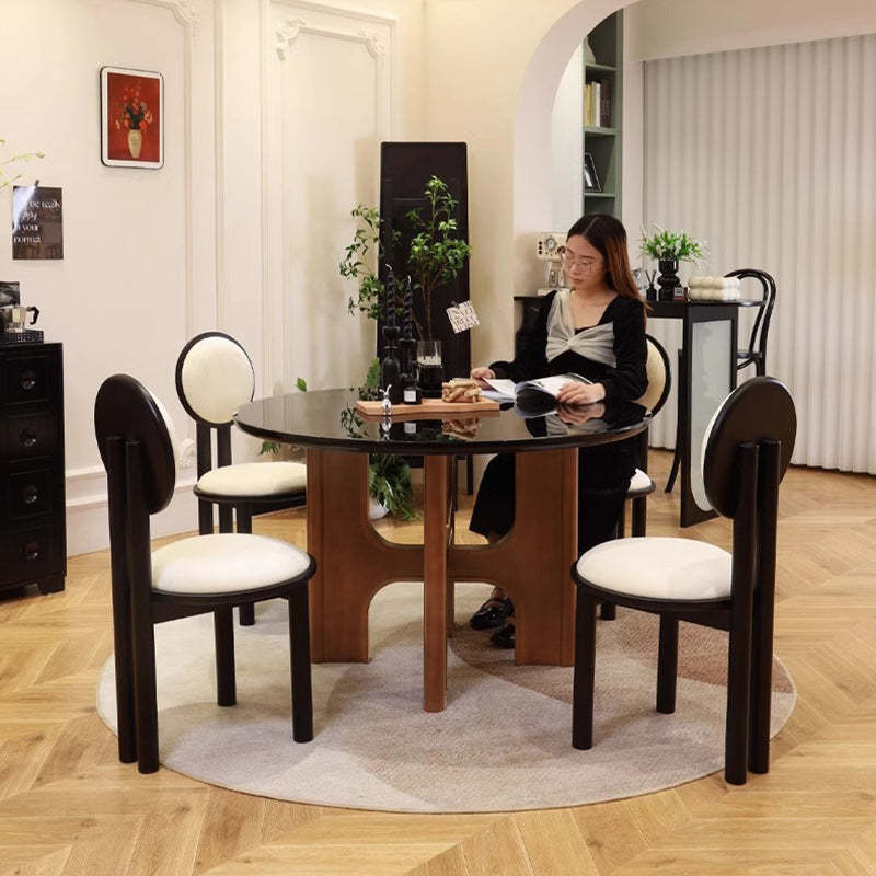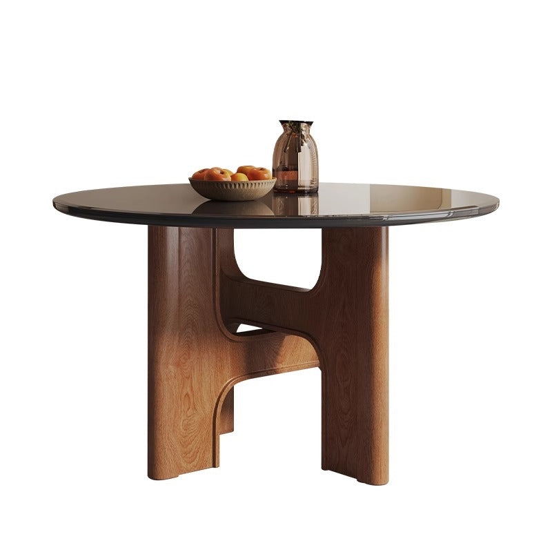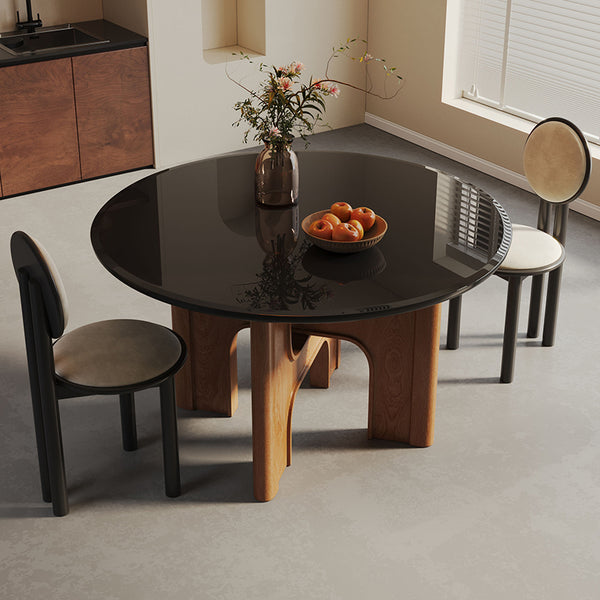 Traditional French Round Cross Leg Solid Oak Tempered Glass Dining Table & Chair Set For 2/4/6/8 Seats