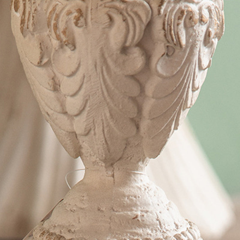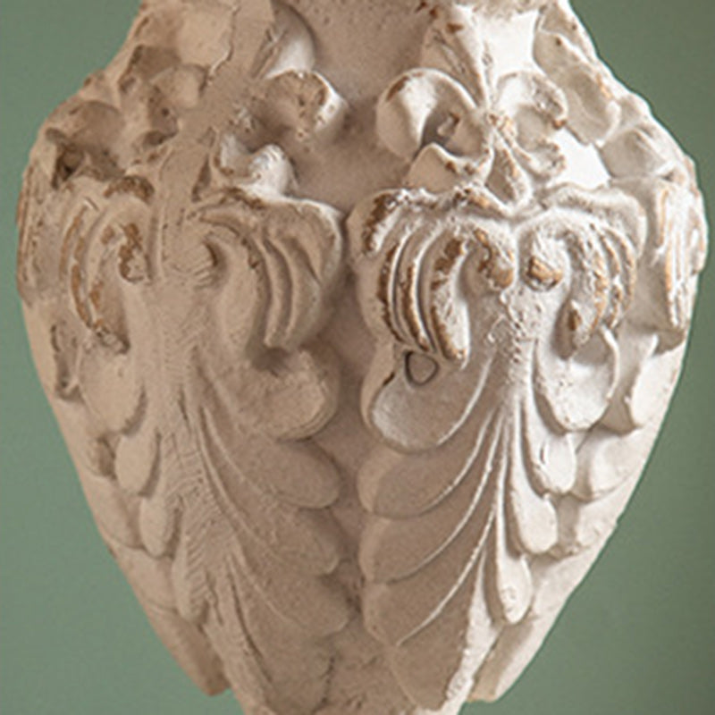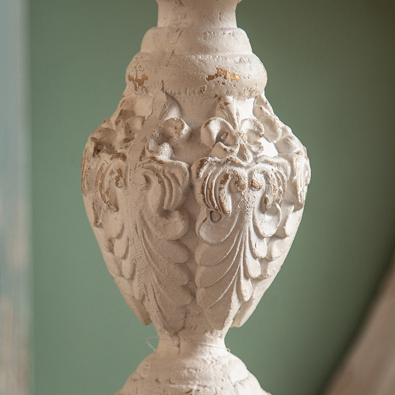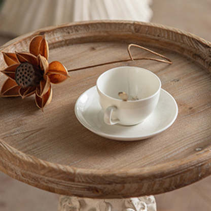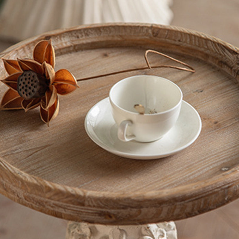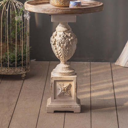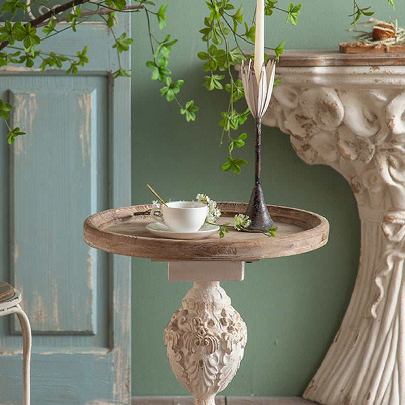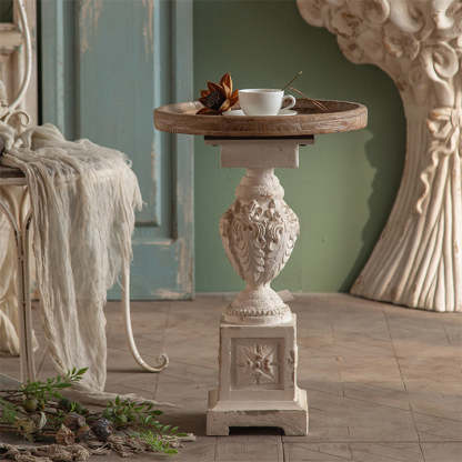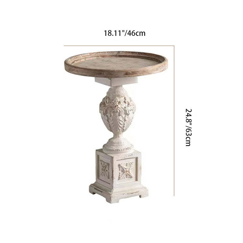 Traditional French Round Square Base Carved Magnesium Oxide Wood End Table For Living Room