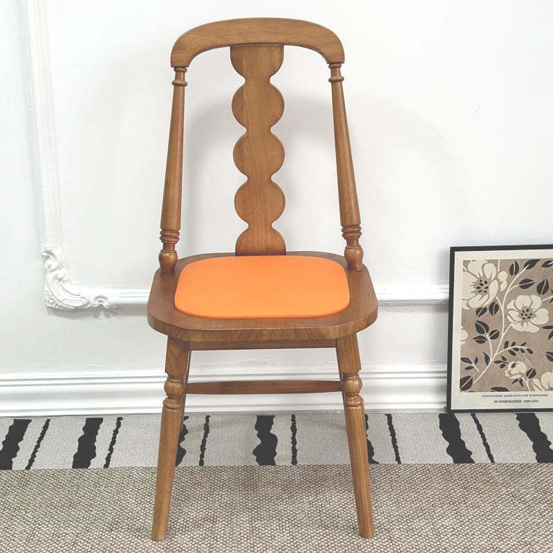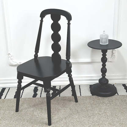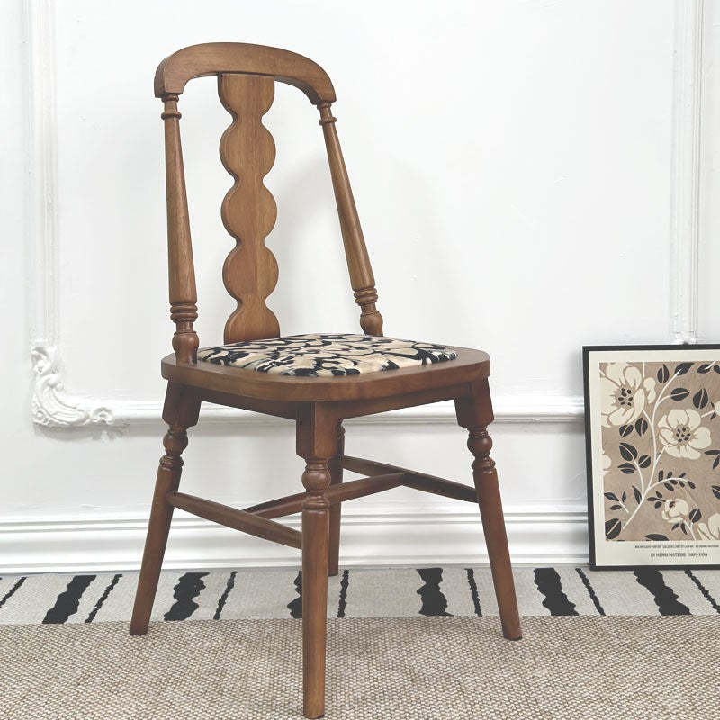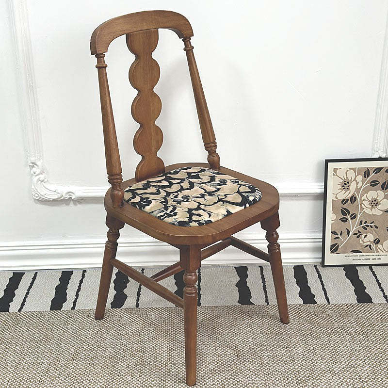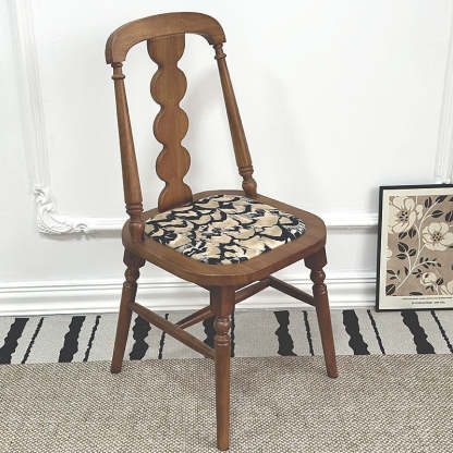 Elevate your dining space with this traditional French dining chair. featuring a square seat. elegant beaded backrest. and soft fabric or leather cushion. Crafted from solid rubber wood in natural. black. or walnut finishes. each chair boasts unique wood grain and tone��adding timeless charm and character to any dining room.