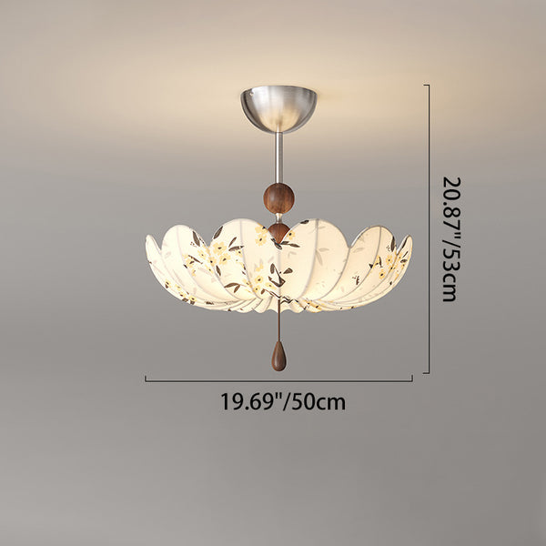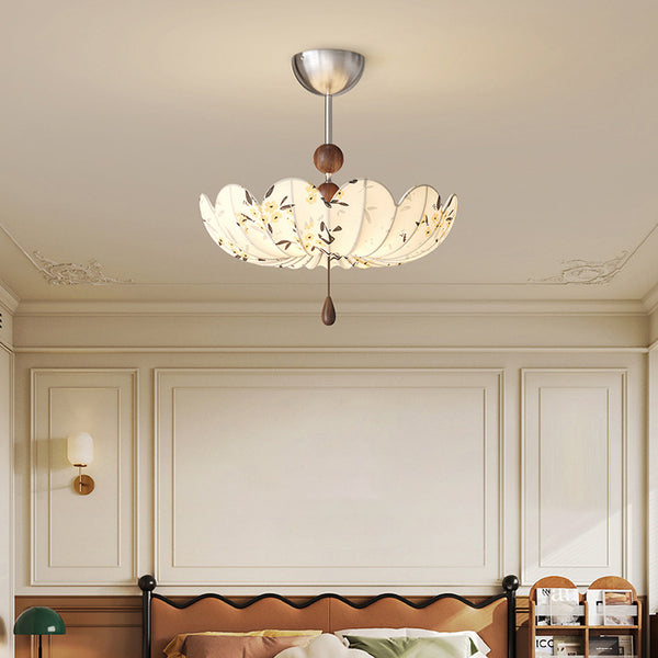 Traditional French Semicircular Bud Fabric Iron Wood 3 – Light Semi-Flush Mount Ceiling Light For Living Room