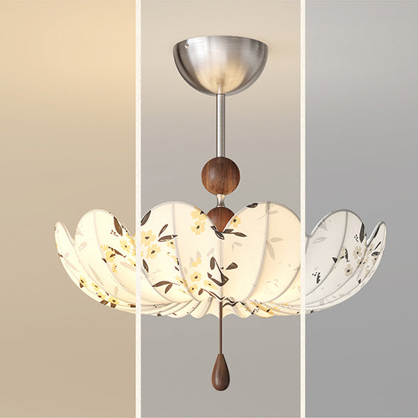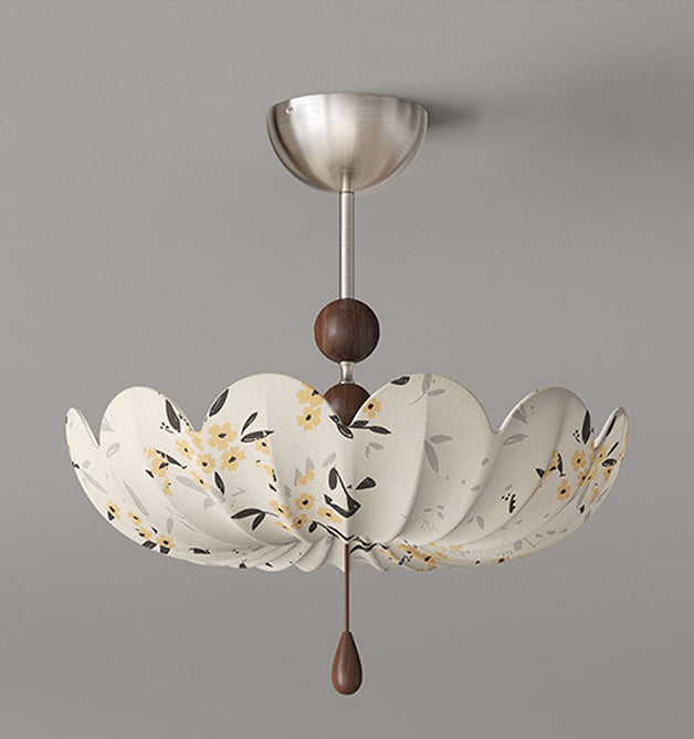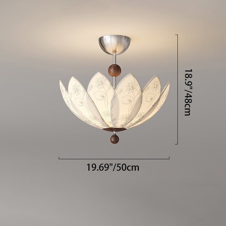 Traditional French Semicircular Bud Fabric Iron Wood 3 – Light Semi-Flush Mount Ceiling Light For Living Room