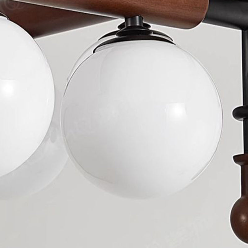 Traditional French Solid Wood Frame Glass Round Shade 4/6-Light Semi-Flush Mount Ceiling Light For Living Room
