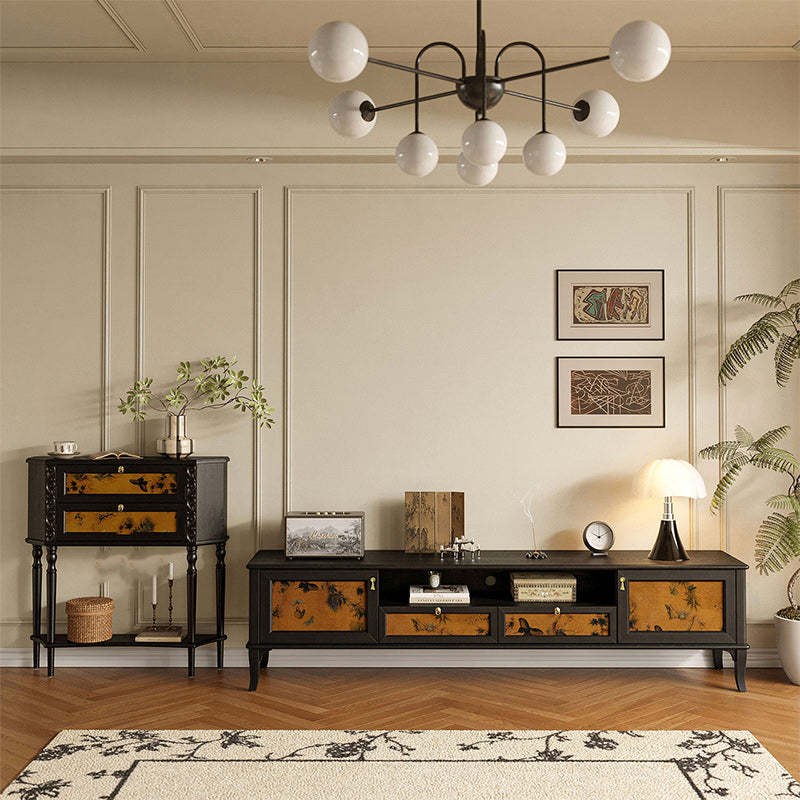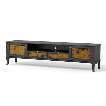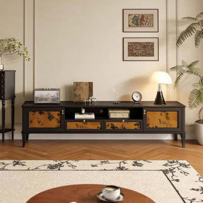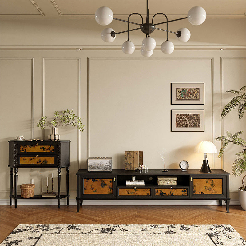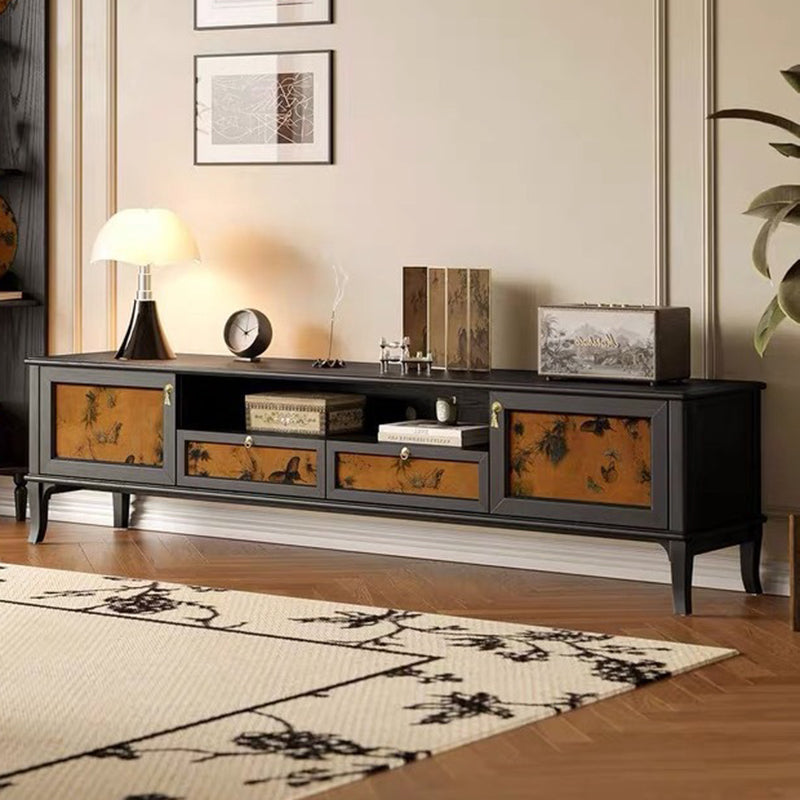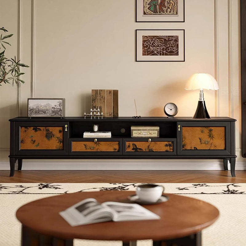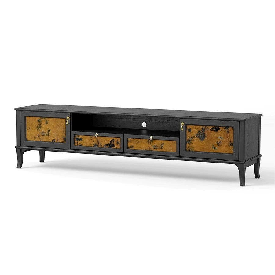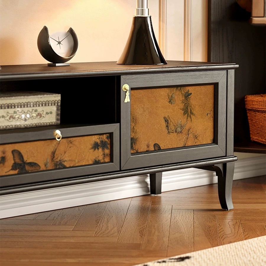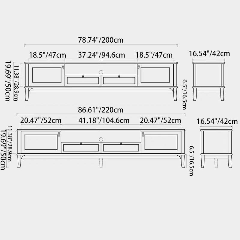 Traditional French Solid Wood Muslin Rectangular TV Stand 2-Cabinet Drawer For Living Room