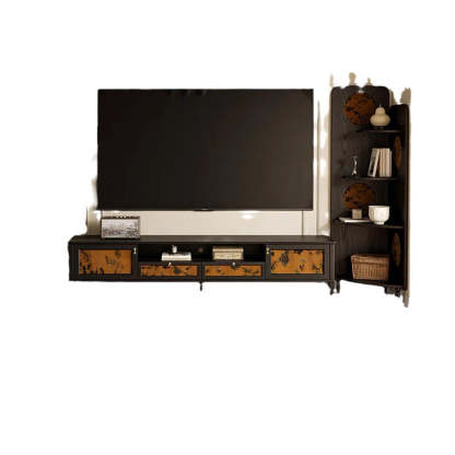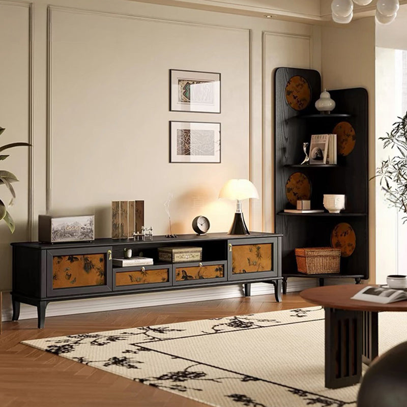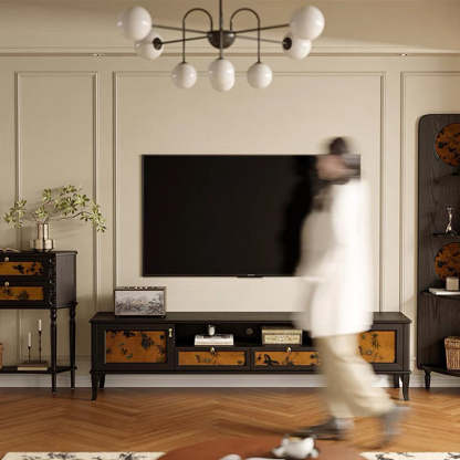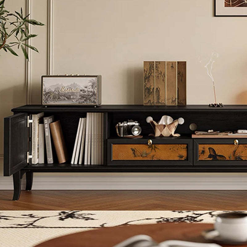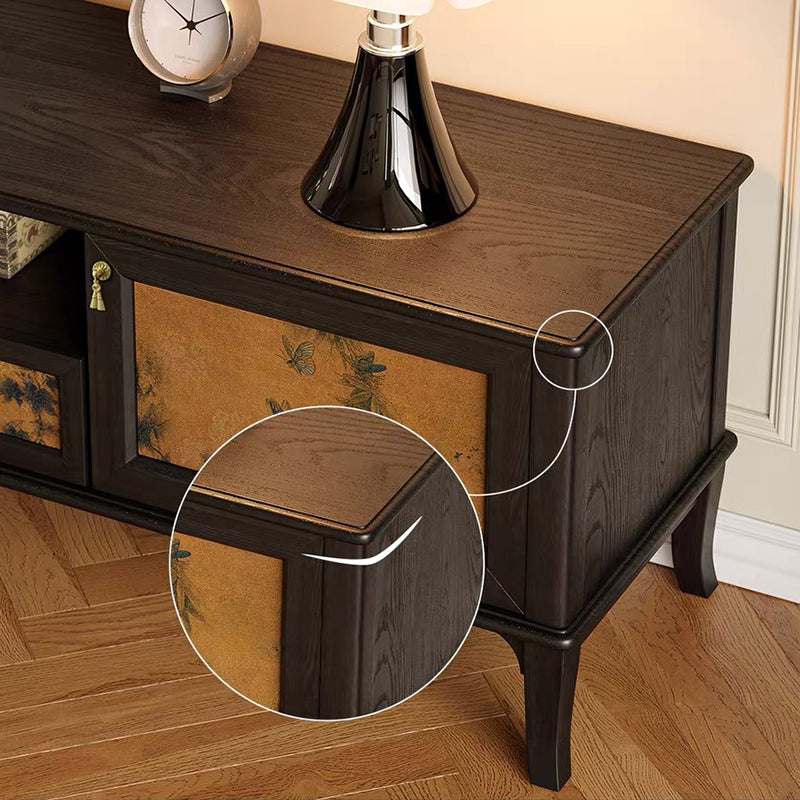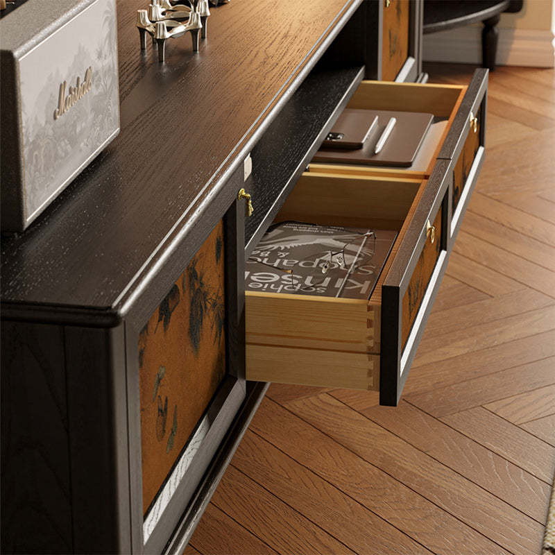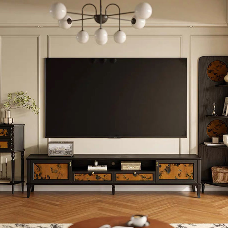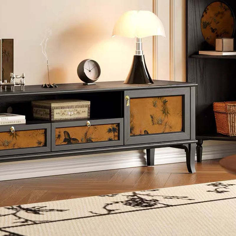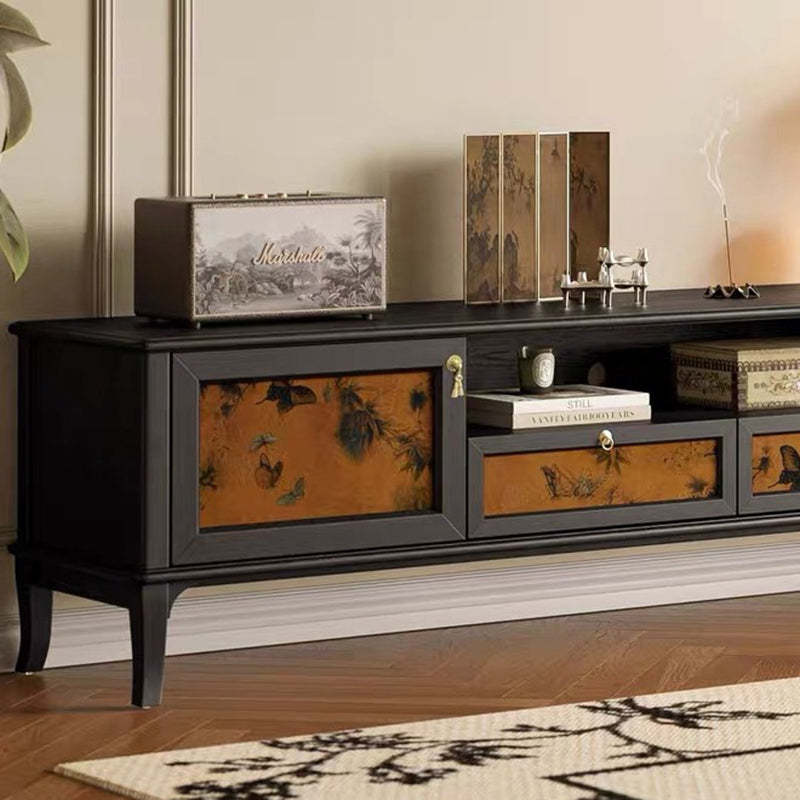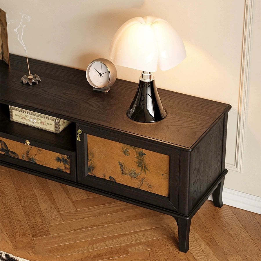 Traditional French Solid Wood Muslin Rectangular TV Stand 2-Cabinet Drawer For Living Room