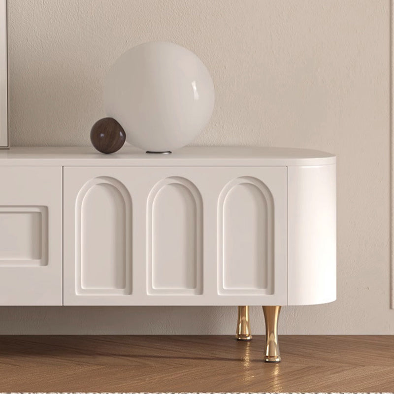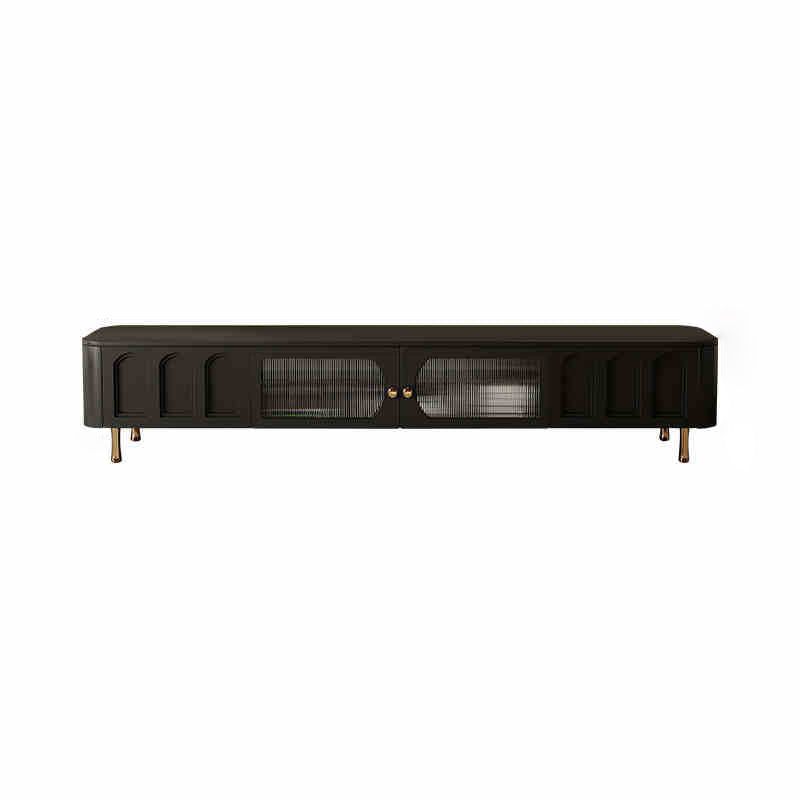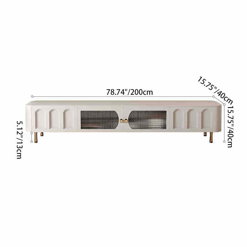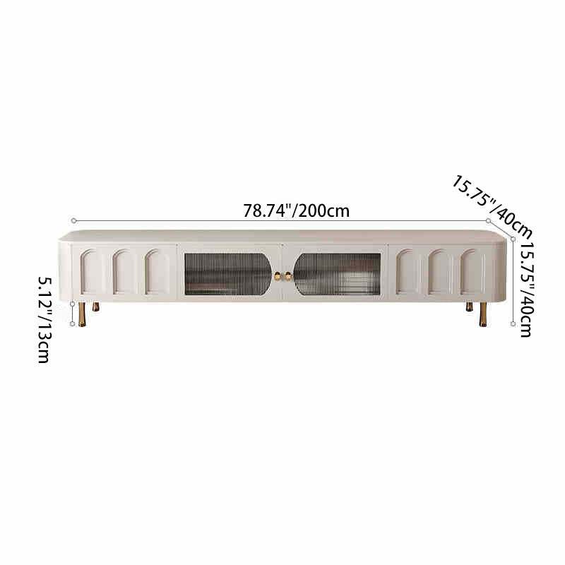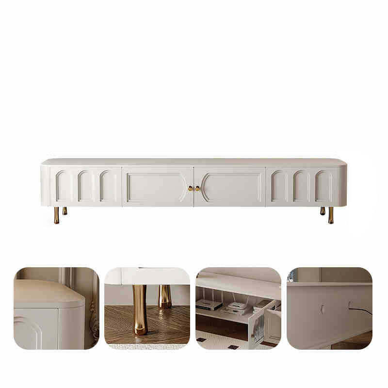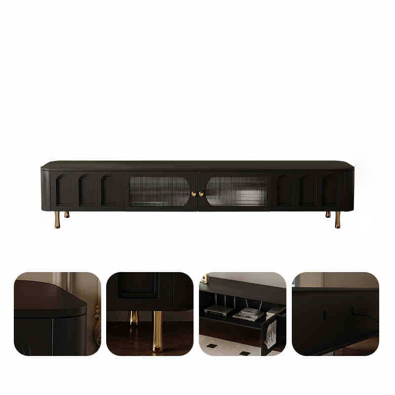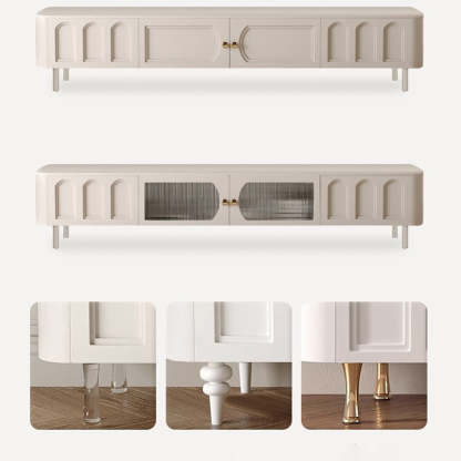 Traditional French Solid Wood Panel Glass Stainless Steel Rectangular Arched Door TV Stand 2-Cabinet Drawer For Living Room