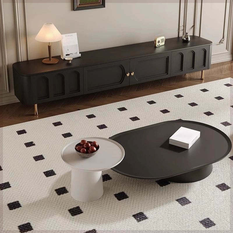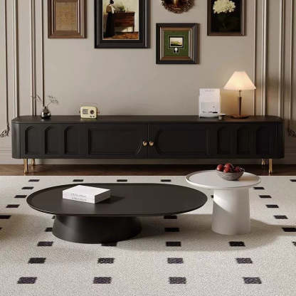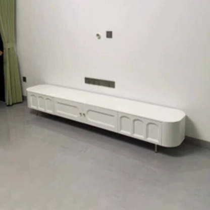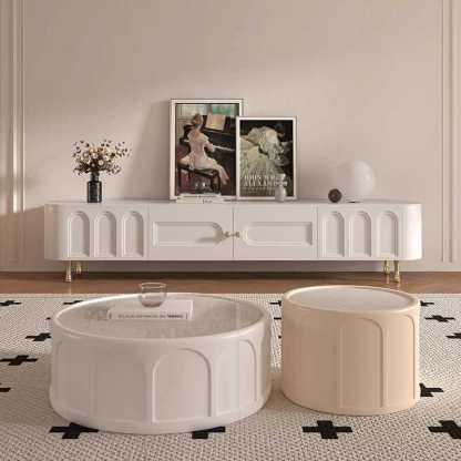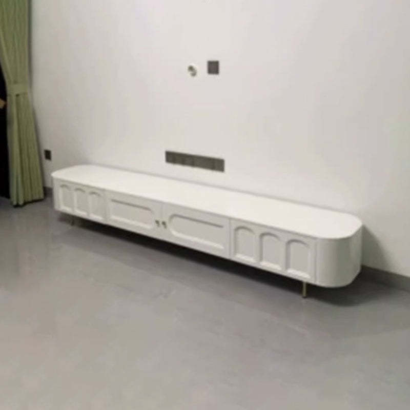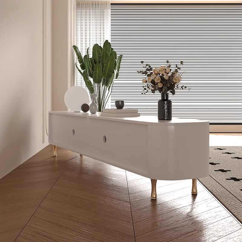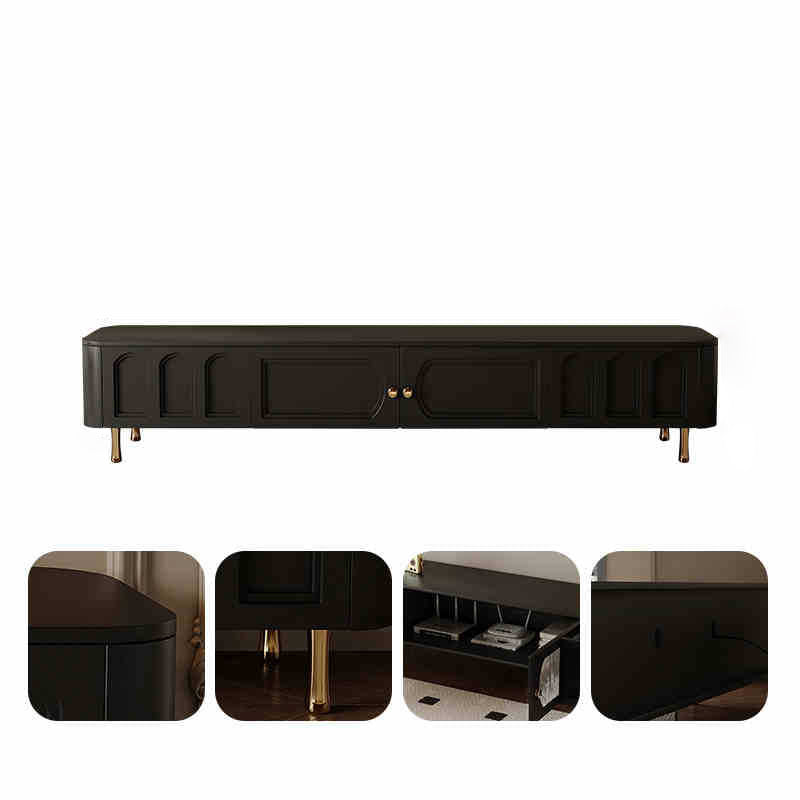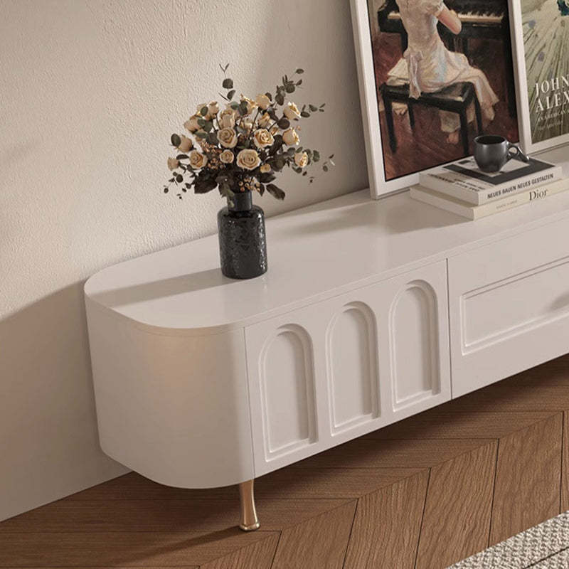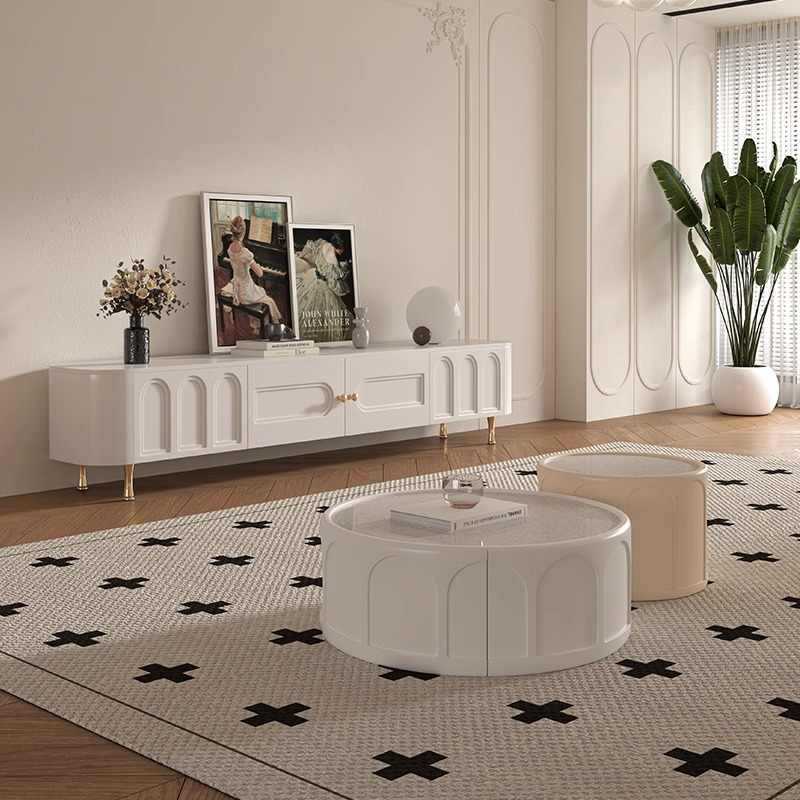 Traditional French Solid Wood Panel Glass Stainless Steel Rectangular Arched Door TV Stand 2-Cabinet Drawer For Living Room