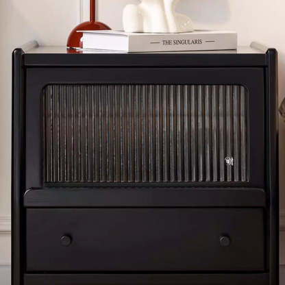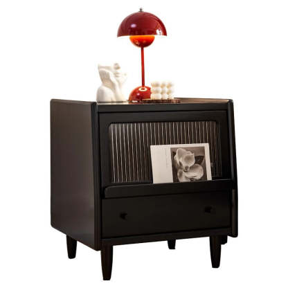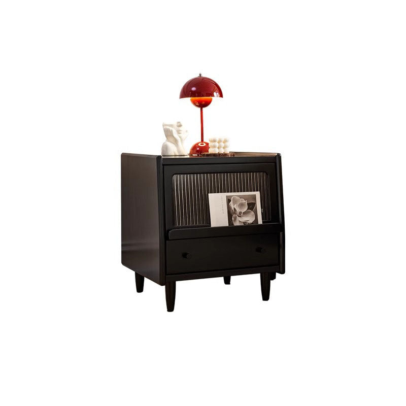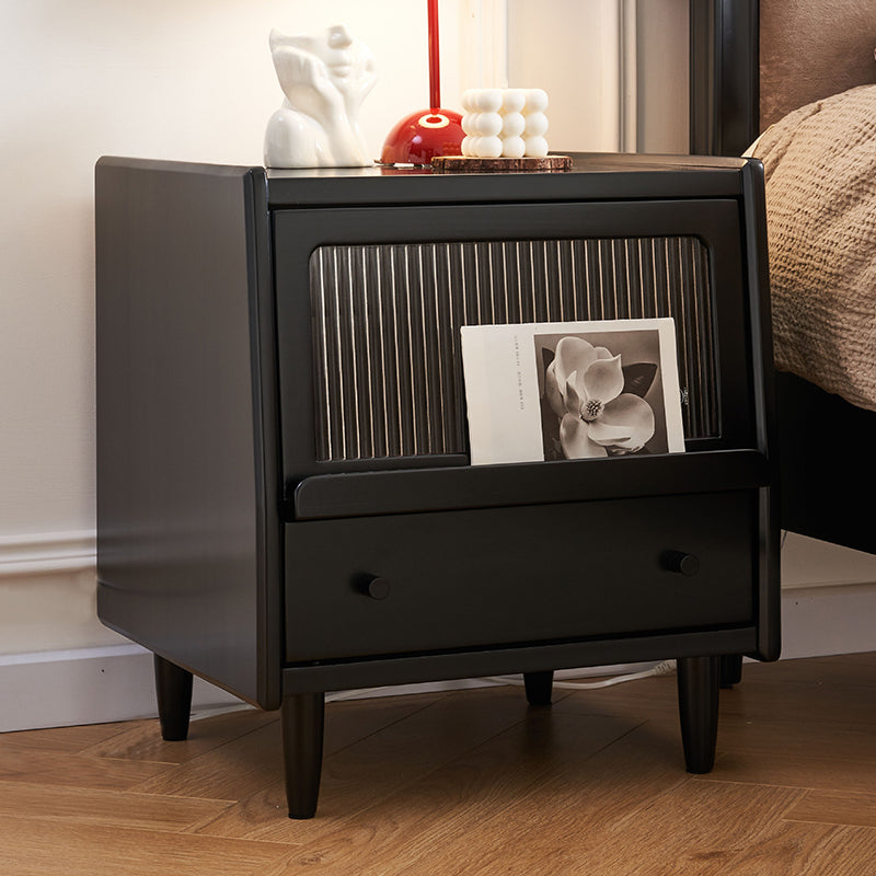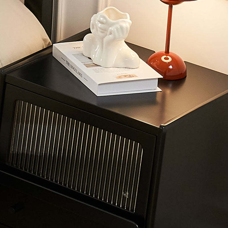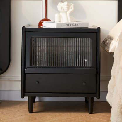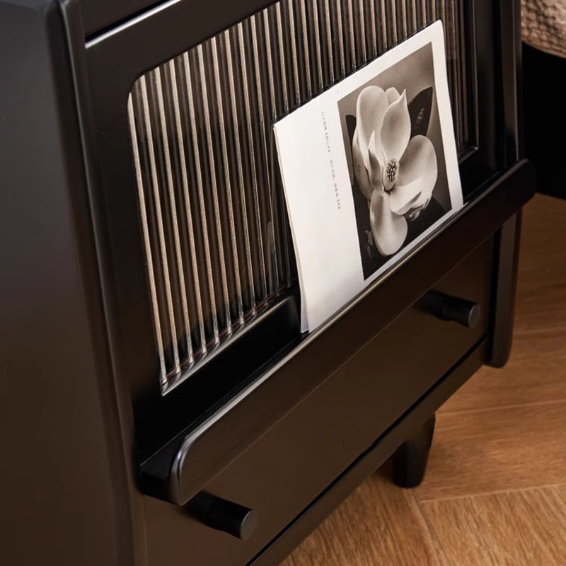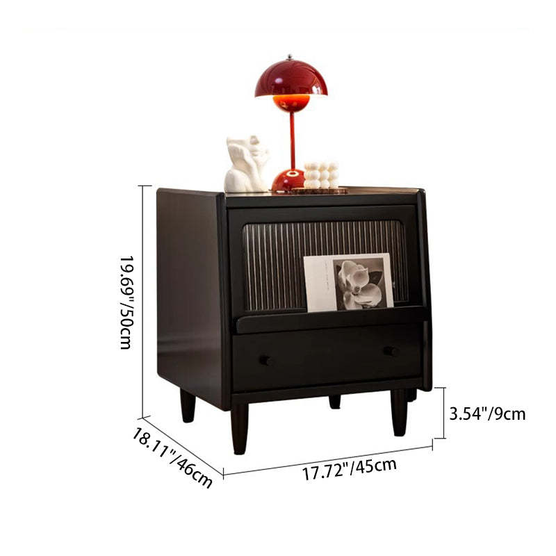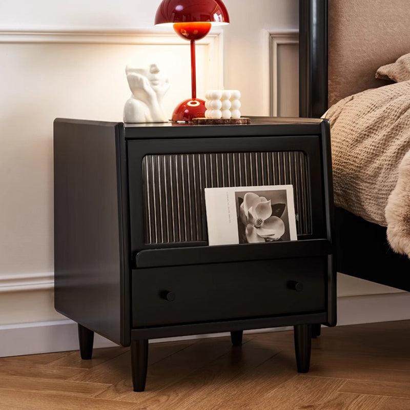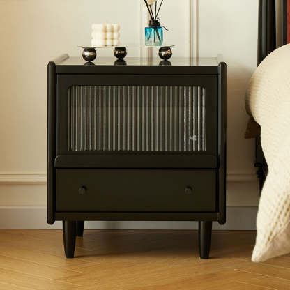 Traditional French Wood Striped Glass Rectangular Nightstand 1-Drawer Storage For Bedside
