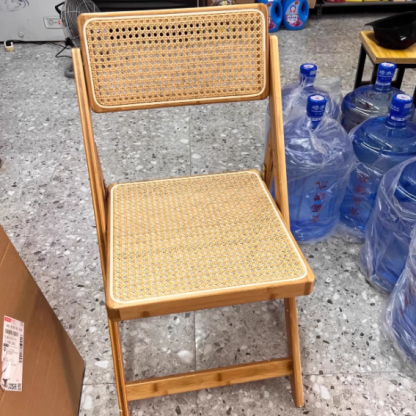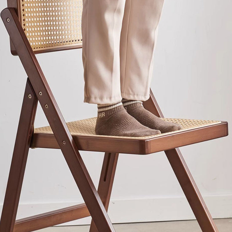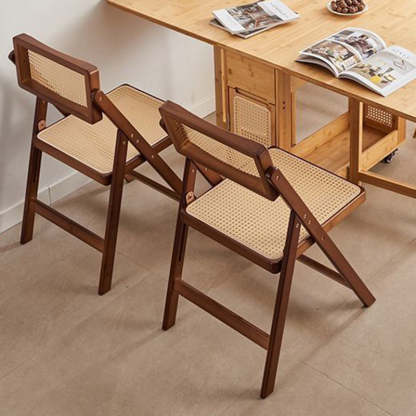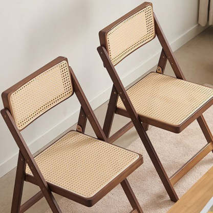 This foldable dining chair blends traditional Japanese style with modern convenience. featuring a hexagonal woven rattan seat and backrest. sturdy double-sided support. and a warm bamboo or walnut finish. Ideal for compact dining spaces. it's both stylish and easy to store.