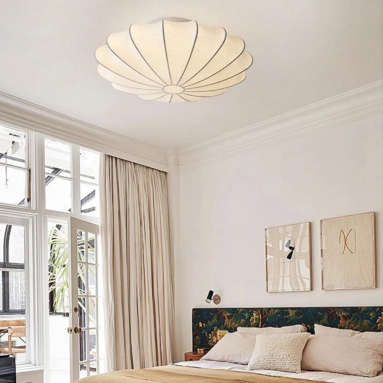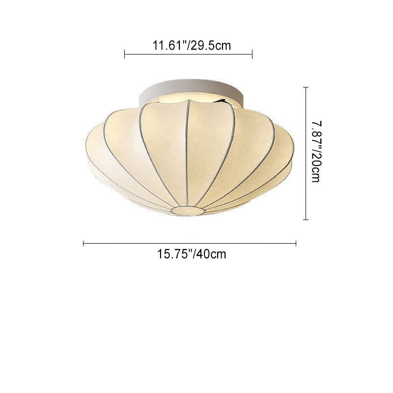 Traditional Japanese Bell Shape Metal Silk 1/3-Light Semi-Flush Mount Ceiling Light For Living Room