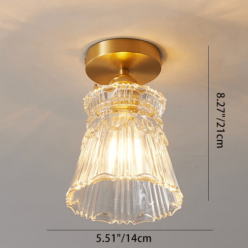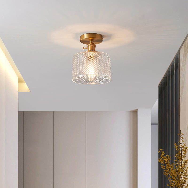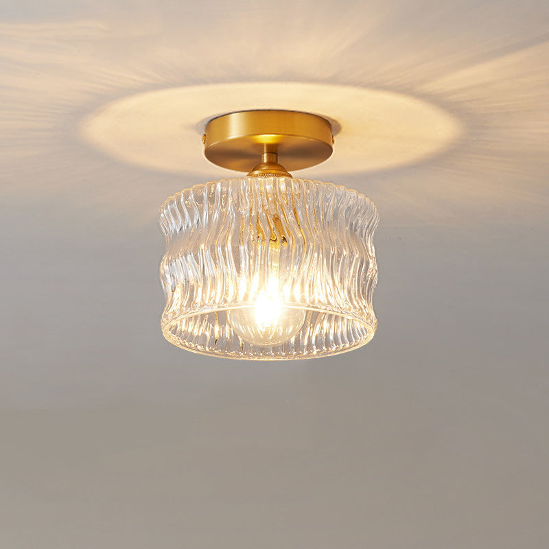 Traditional Japanese Brass Glass Bowl Cylinder Ripple 1-Light Semi-Flush Mount Ceiling Light For Hallway