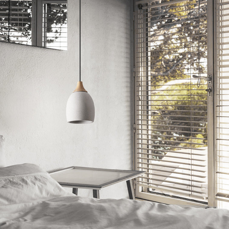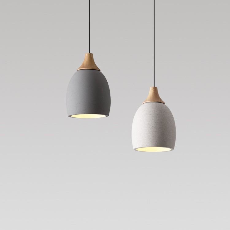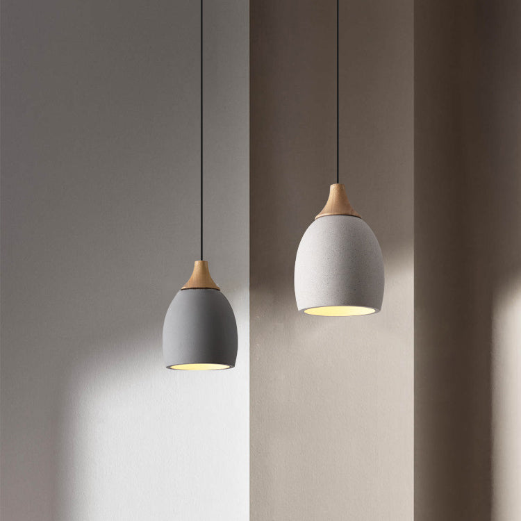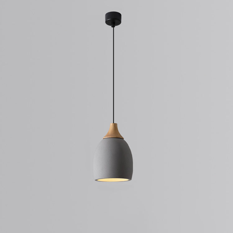 Traditional Japanese Cement Solid Wood Circle 1-Light Pendant Light For Dining Room