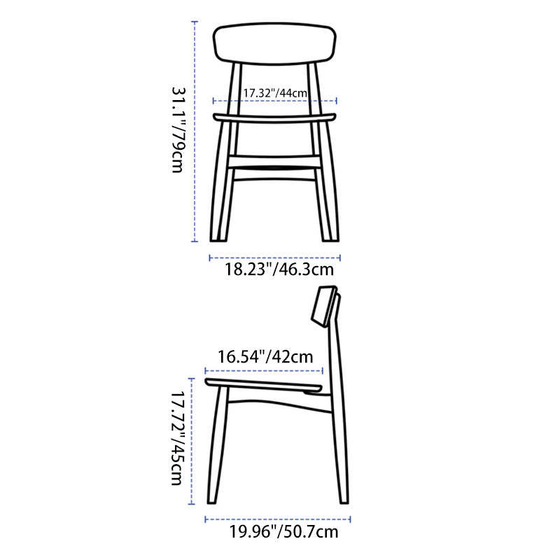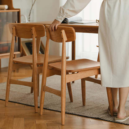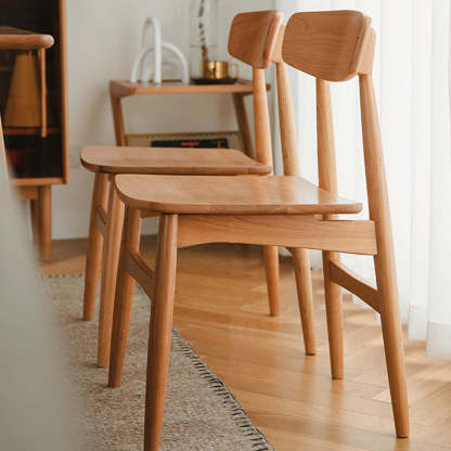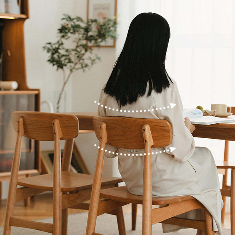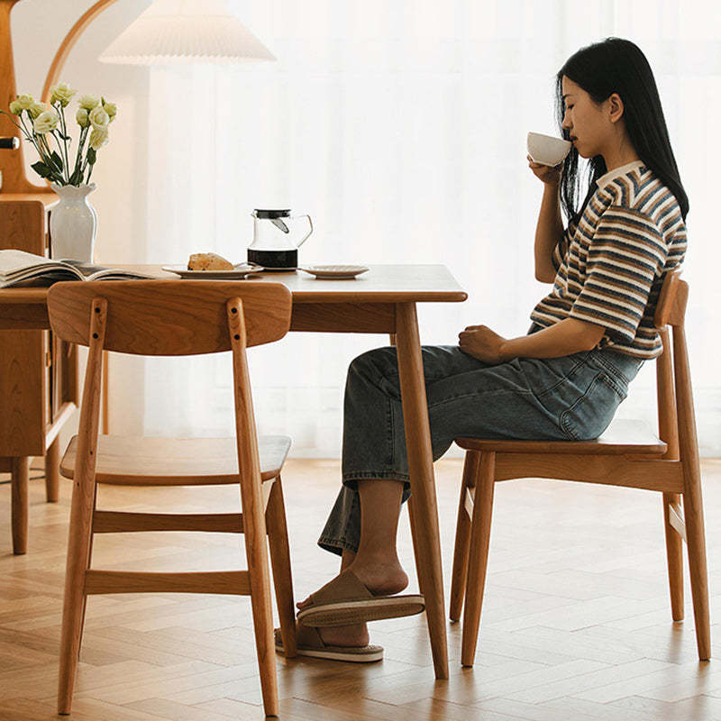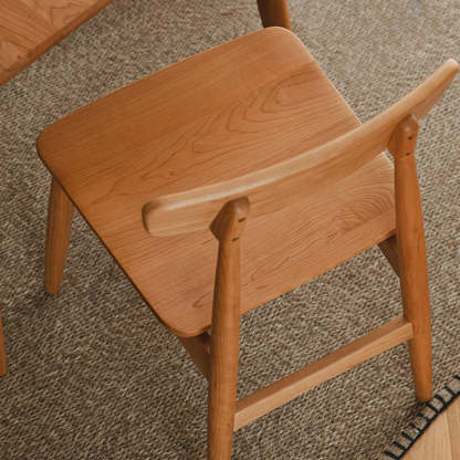 Traditional Japanese Cherry Wood Curved Square Dining Chair With Backrest For Dining Room
