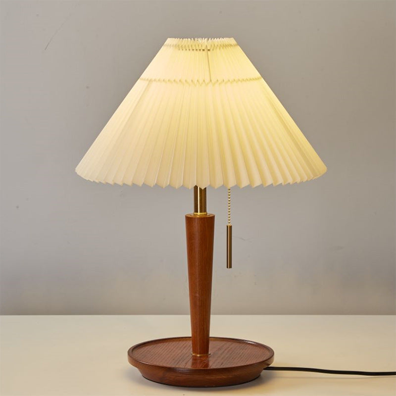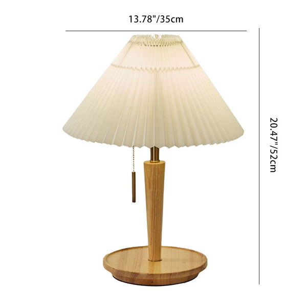 Traditional Japanese Dome Wood Fabric 1-Light Table Lamp For Living Room