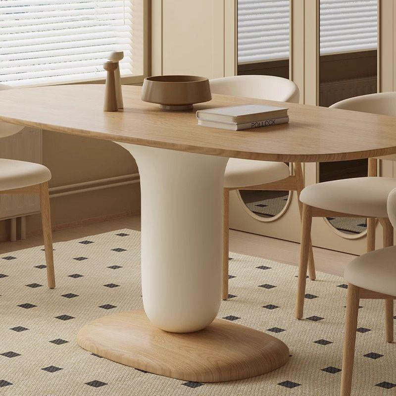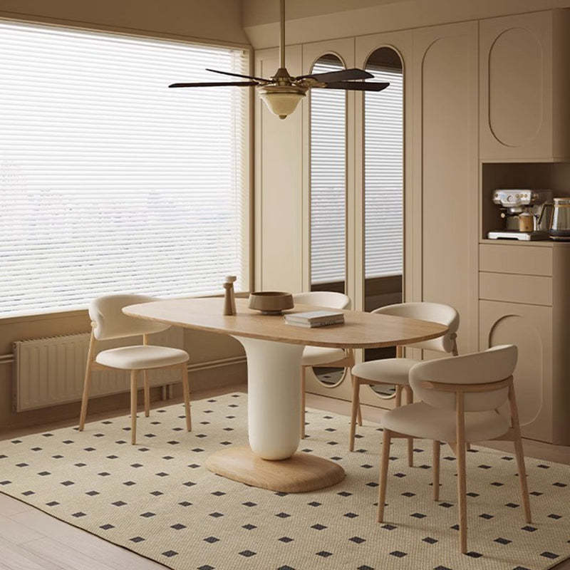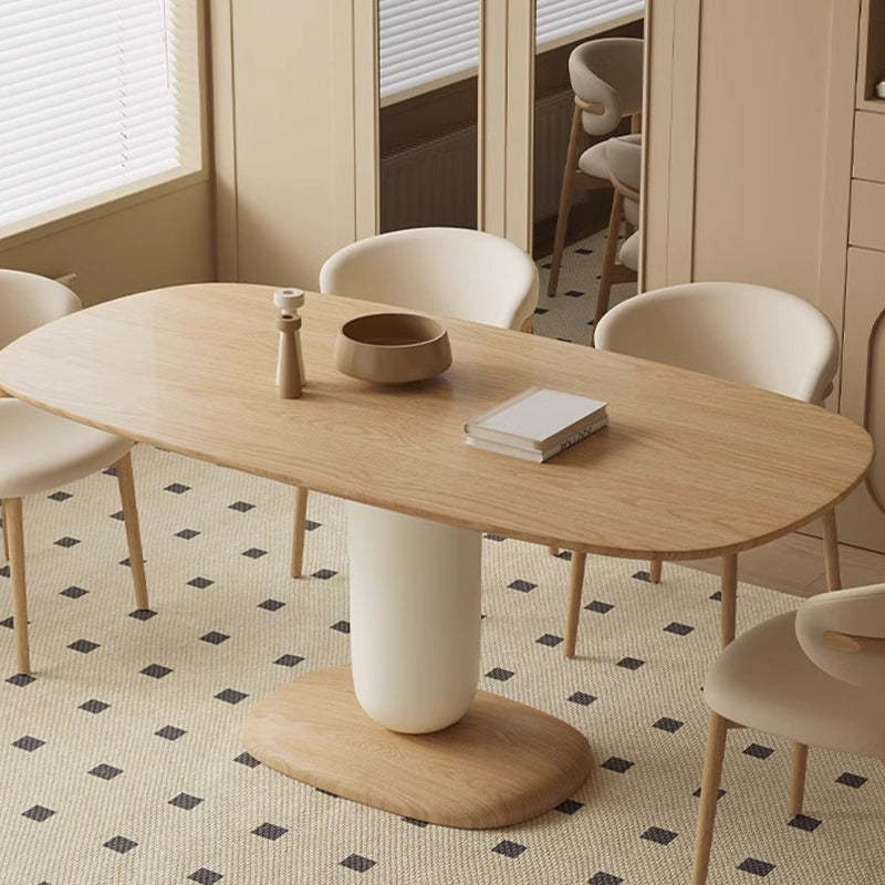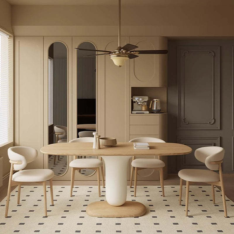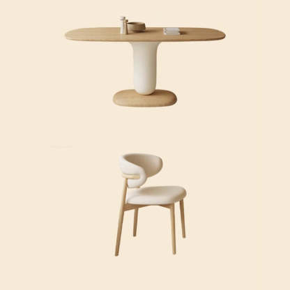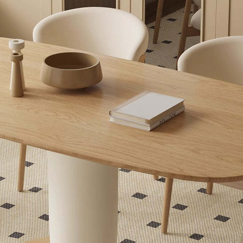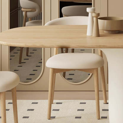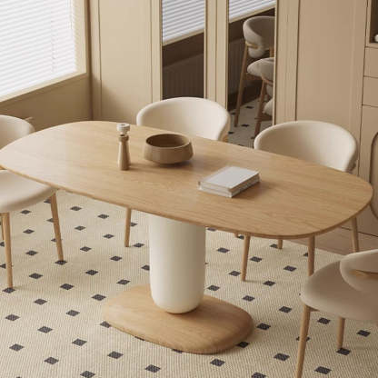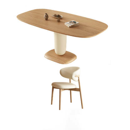 Traditional Japanese Elliptical Ash Wood Oaken Dining Table & Chair Set For 4/6 Seats