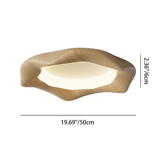 Traditional Japanese Iron Wood Grain Corrugated ABS Shade LED Flush Mount Ceiling Light For Bedroom