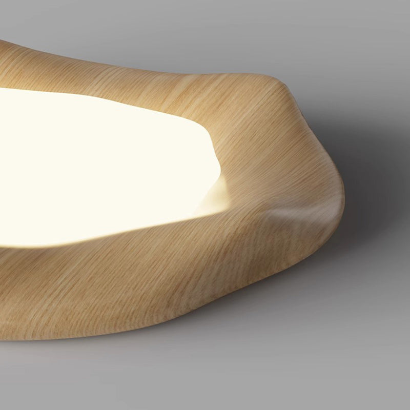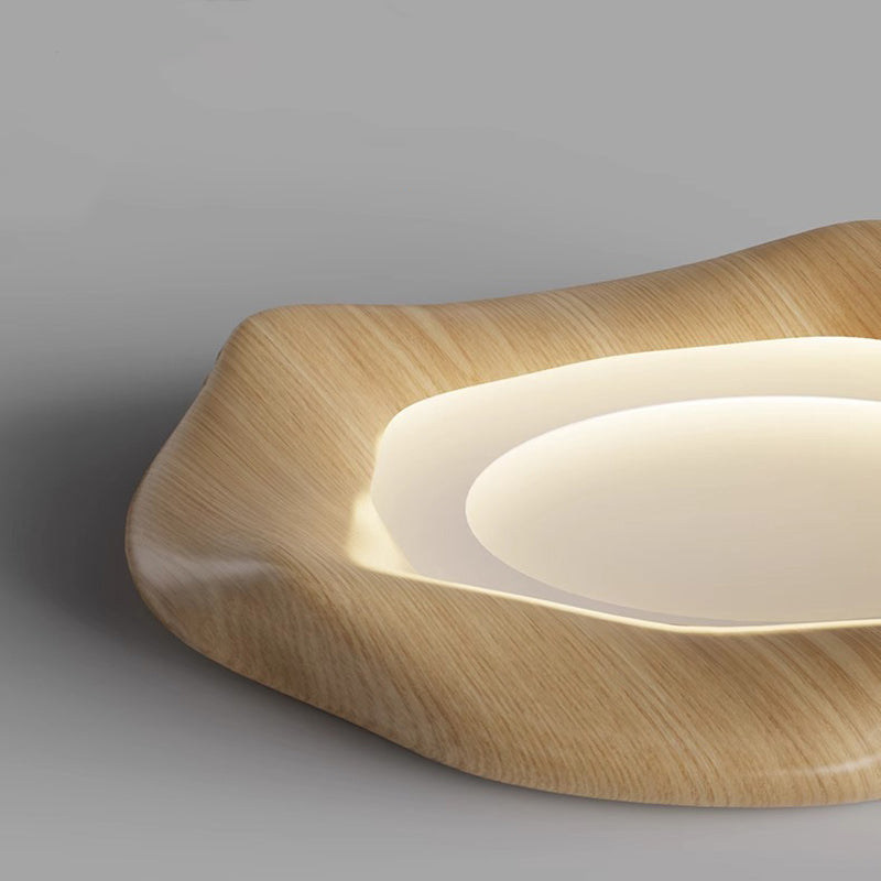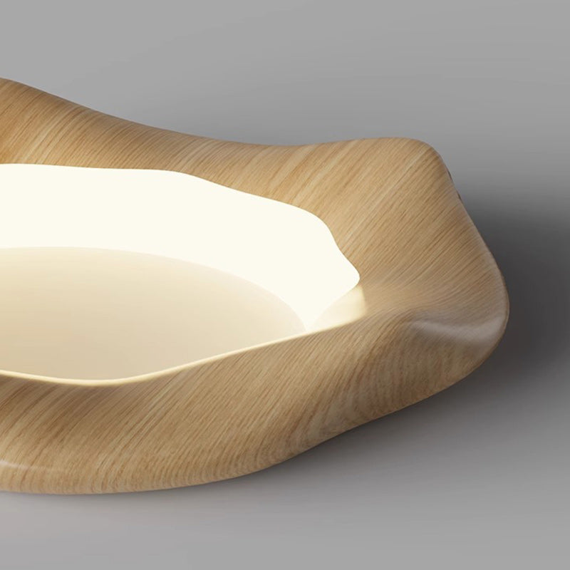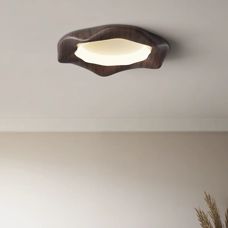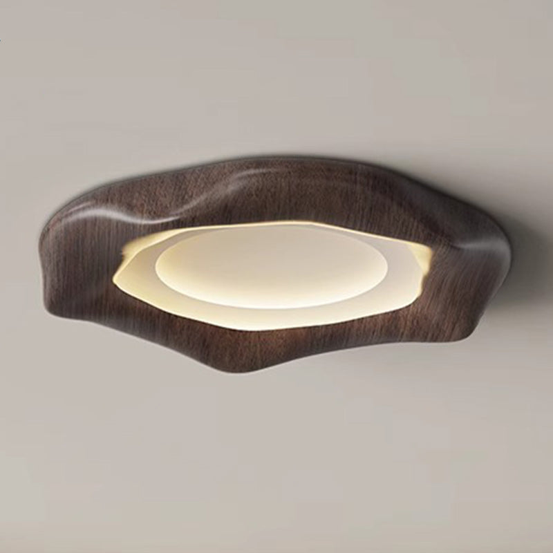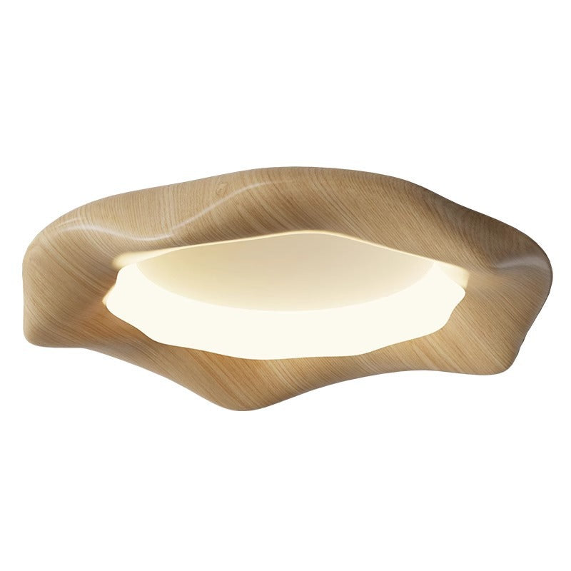 Traditional Japanese Iron Wood Grain Corrugated ABS Shade LED Flush Mount Ceiling Light For Bedroom