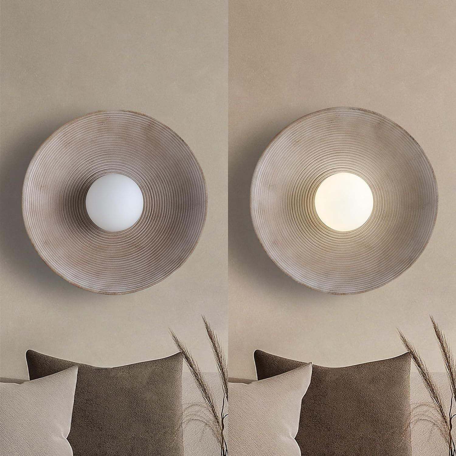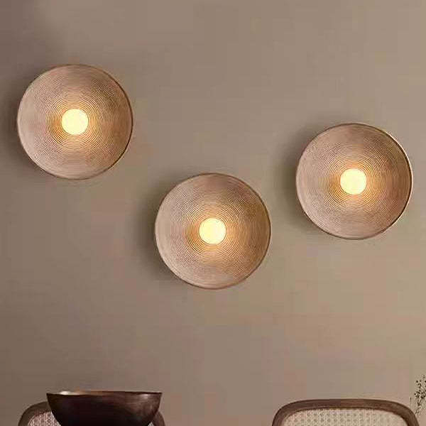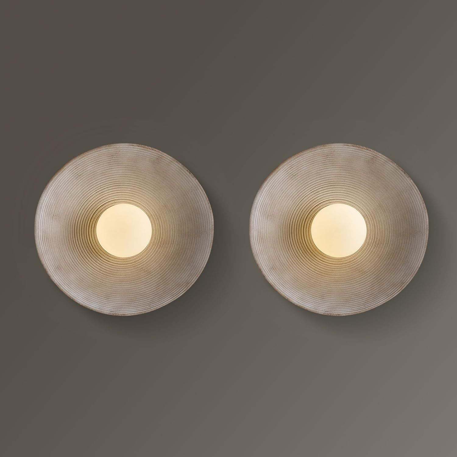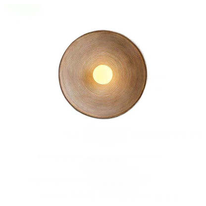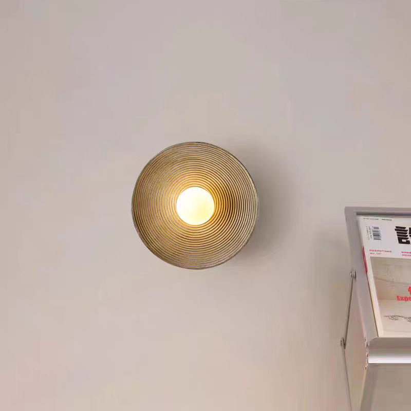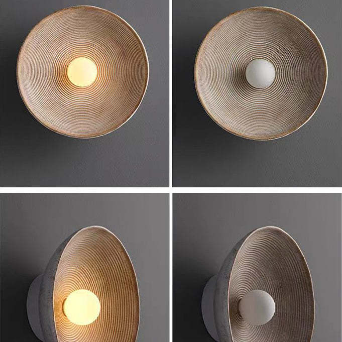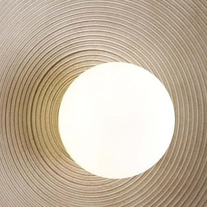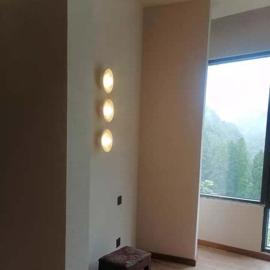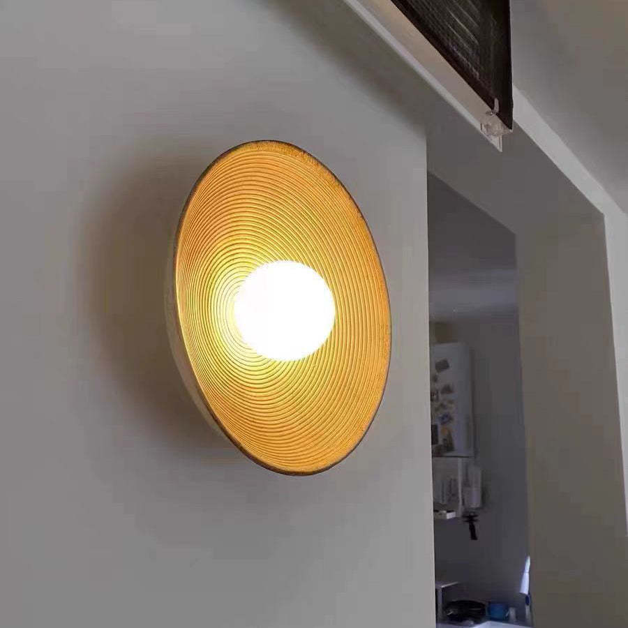 Traditional Japanese Resin Glass Round Annual Ring 1-Light Wall Sconce Lamp For Living Room