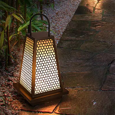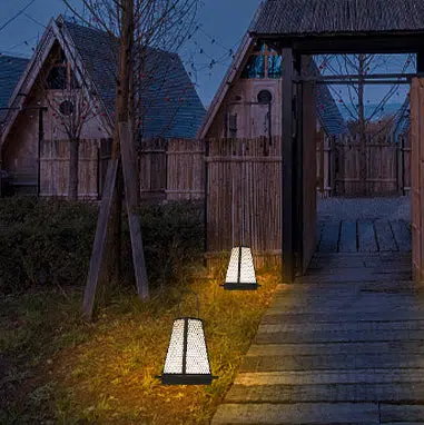 Traditional Japanese Solar Waterproof Stainless Steel Acrylic Trapezoidal Honeycombed Lantern LED Outdoor Light Landscape Lighting For Garden