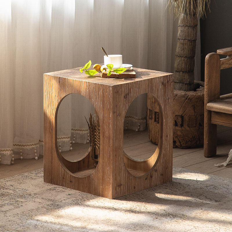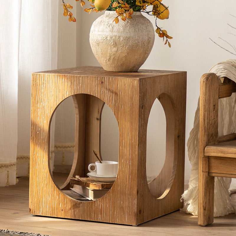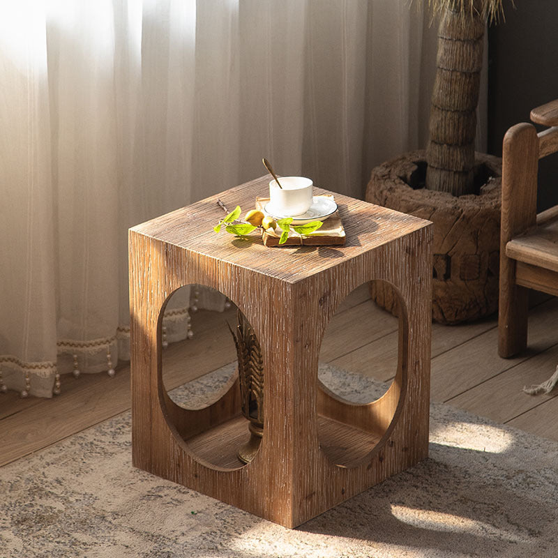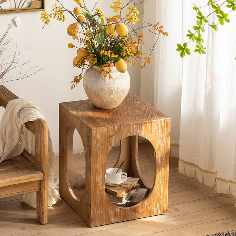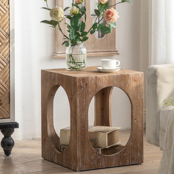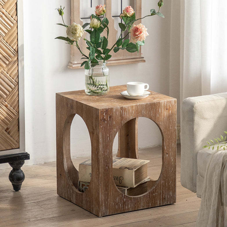 Traditional Japanese Square Wood End Table 2-Tier For Living Room
