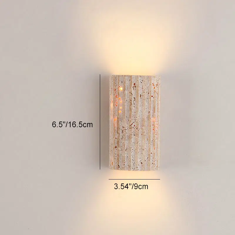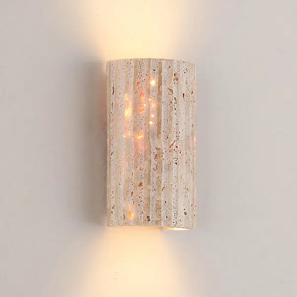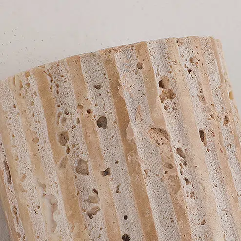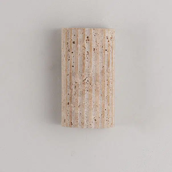 Traditional Japanese Striped Beige Travertine Semicircle LED Waterproof Wall Sconce Lamp For Living Room