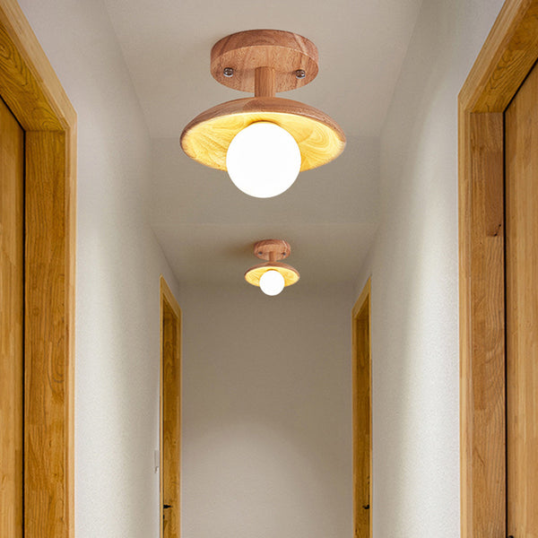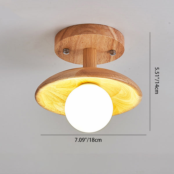 Traditional Japanese Wood Grain Glass Ball Shade 1-Light Semi-Flush Mount Ceiling Light For Living Room
