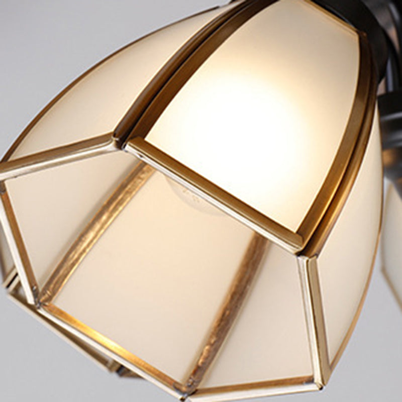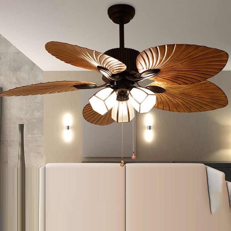 Traditional Retro Leaves Texture ABS Fan Glass Hexagonal Shade 3-Light Downrods Ceiling Fan Light For Living Room