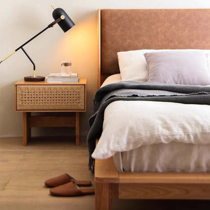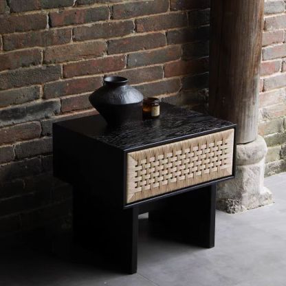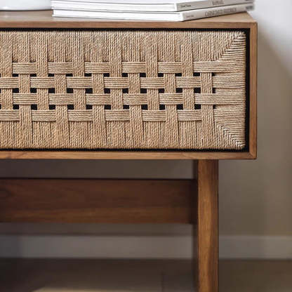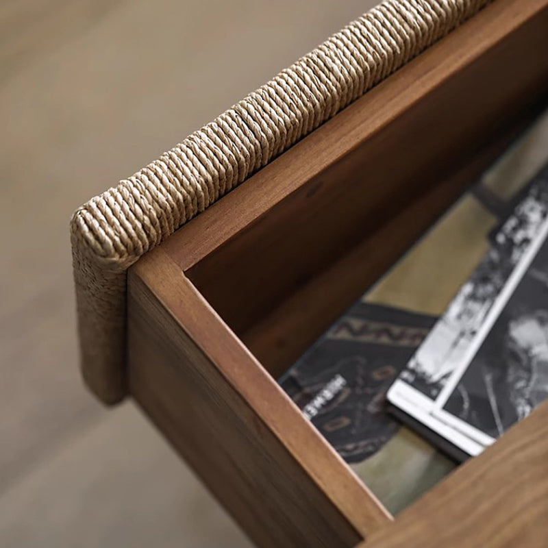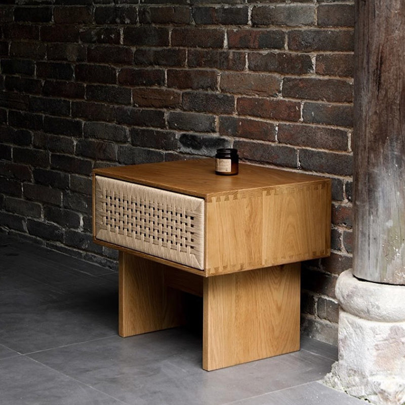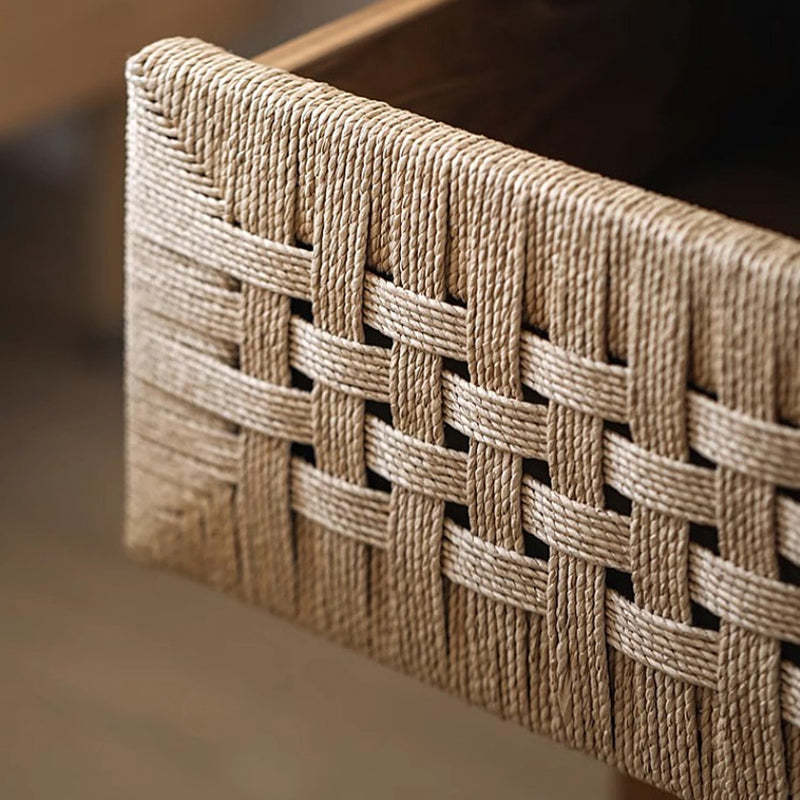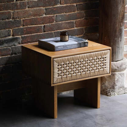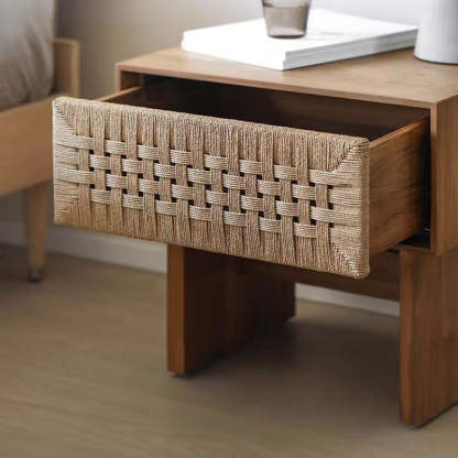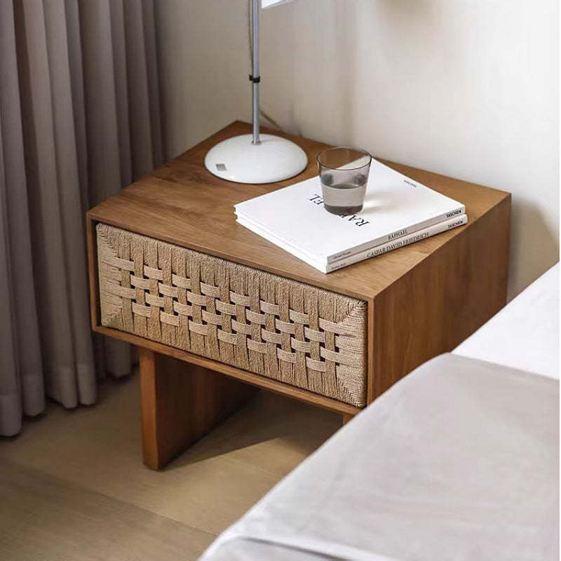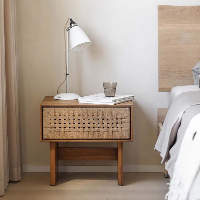 Traditional Rustic Rectangular Solid Wood Danish Cord Nightstand 1-Drawer For Bedroom