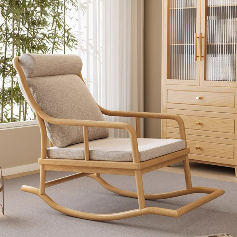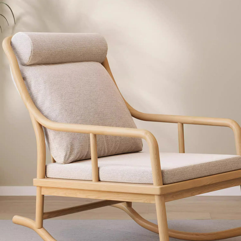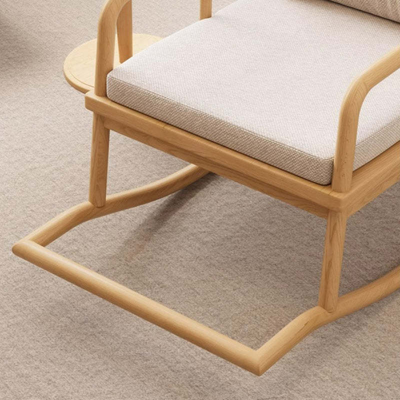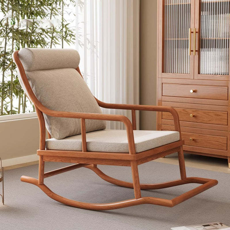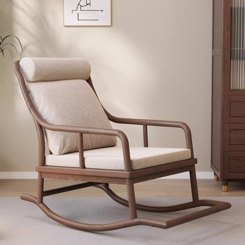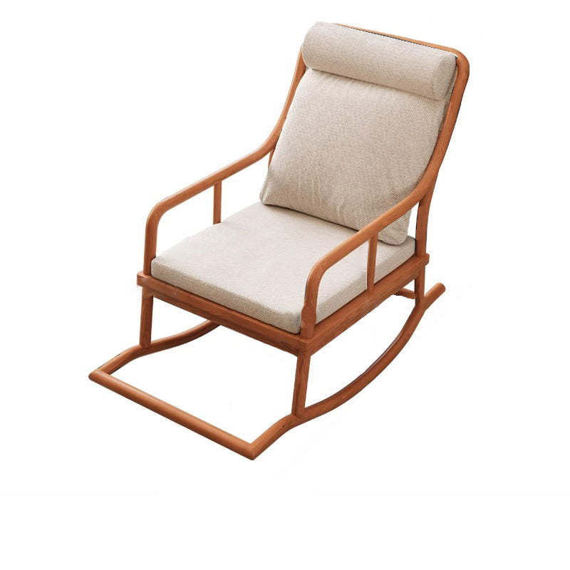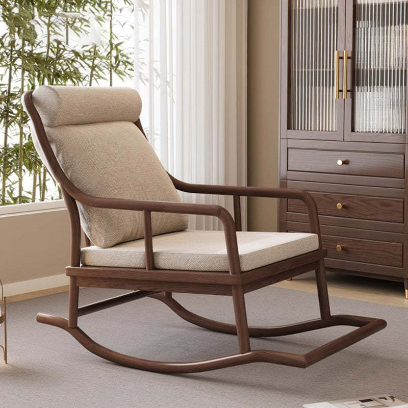 Traditional Rustic Solid Wood Frame Cotton Linen Upholstered Recliner Armrest Footrest For Living Room