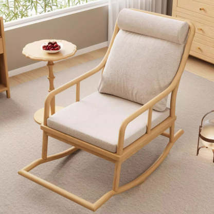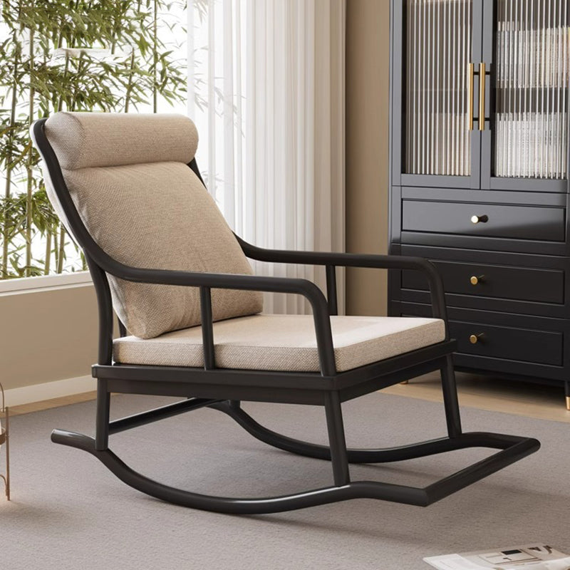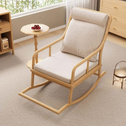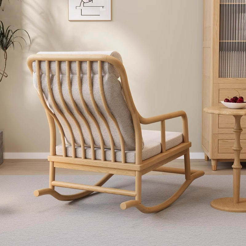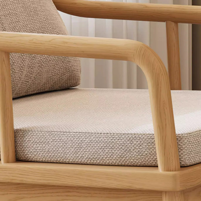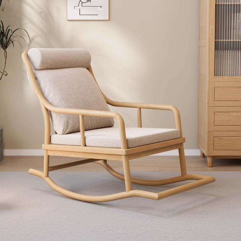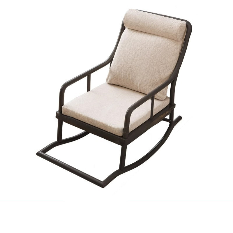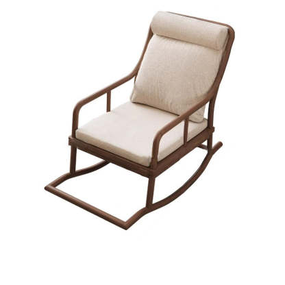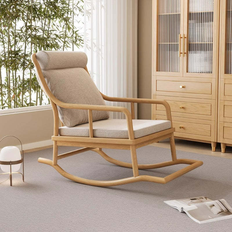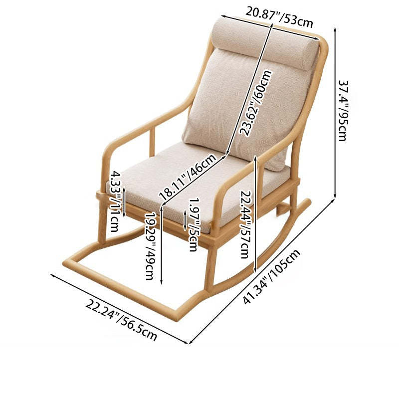 Traditional Rustic Solid Wood Frame Cotton Linen Upholstered Recliner Armrest Footrest For Living Room