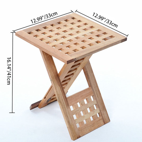 Traditional Rustic Square Wood Chair Backless Armless For Living Room