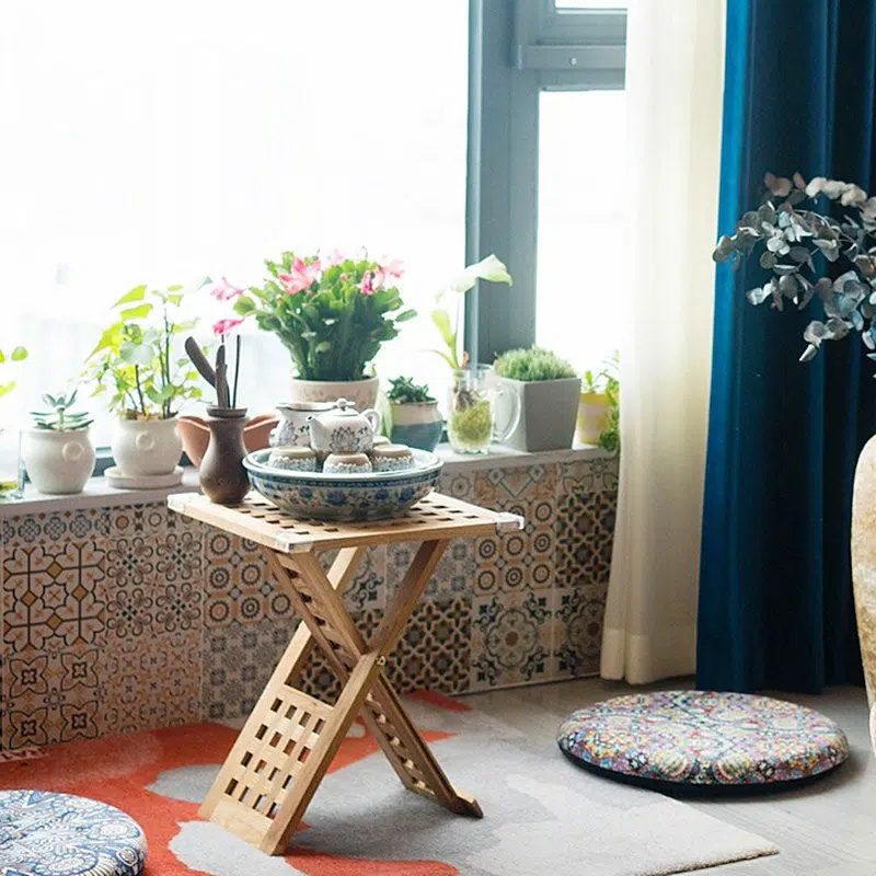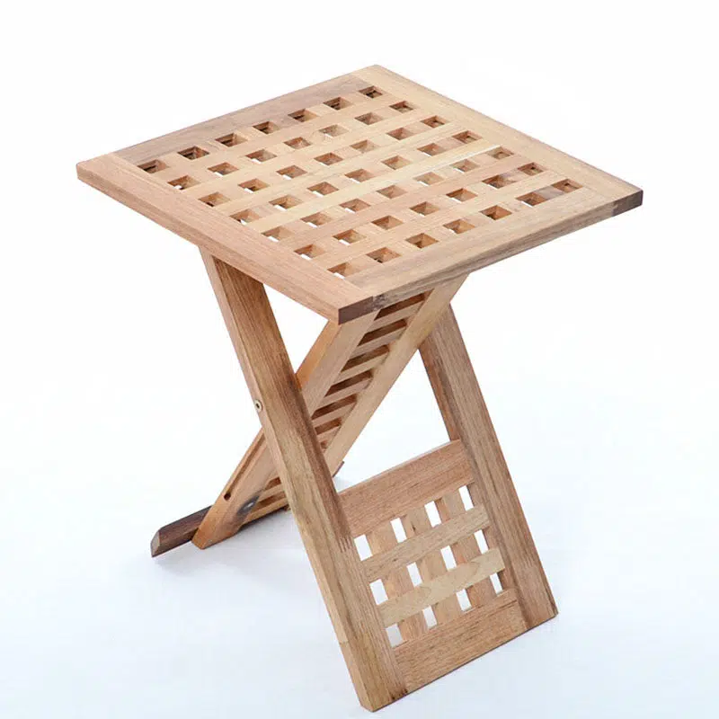 Traditional Rustic Square Wood Chair Backless Armless For Living Room