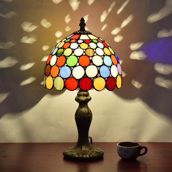 Traditional Tiffany Dome Aluminum Glass 1-Light Table Lamp For Living Room