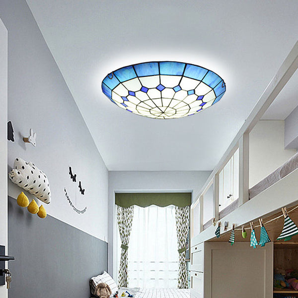 Traditional Tiffany Mediterranean Stained Glass Dome 2-Light Flush Mount Ceiling Light For Hallway