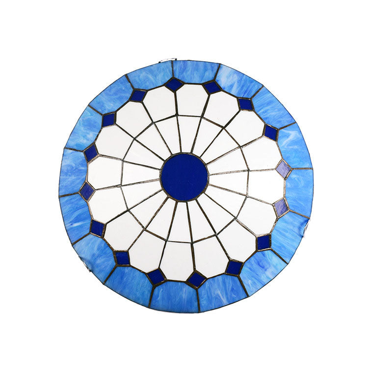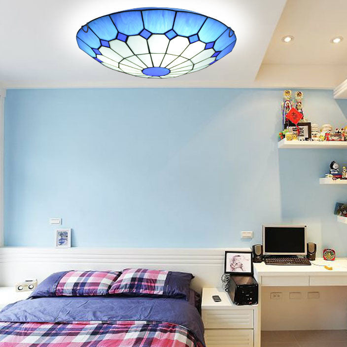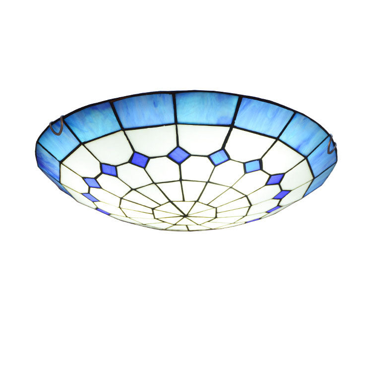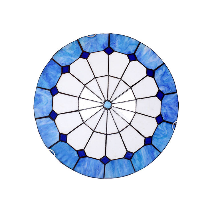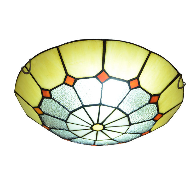 Traditional Tiffany Mediterranean Stained Glass Dome 2-Light Flush Mount Ceiling Light For Hallway