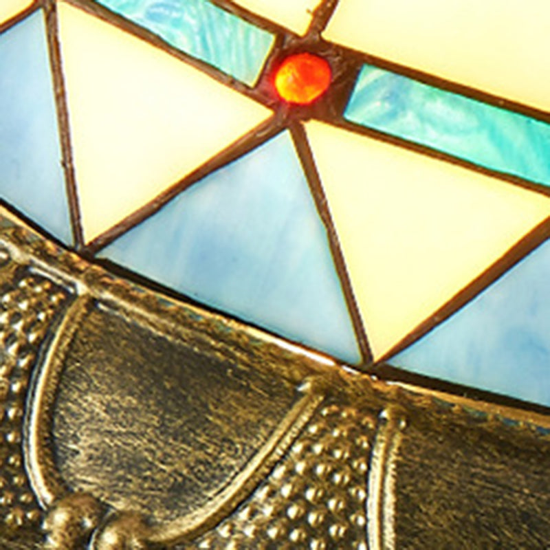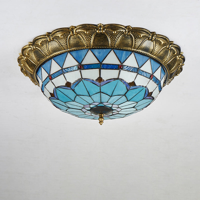 Traditional Tiffany Round Dome Iron Stained Glass LED Flush Mount Ceiling Light For Living Room