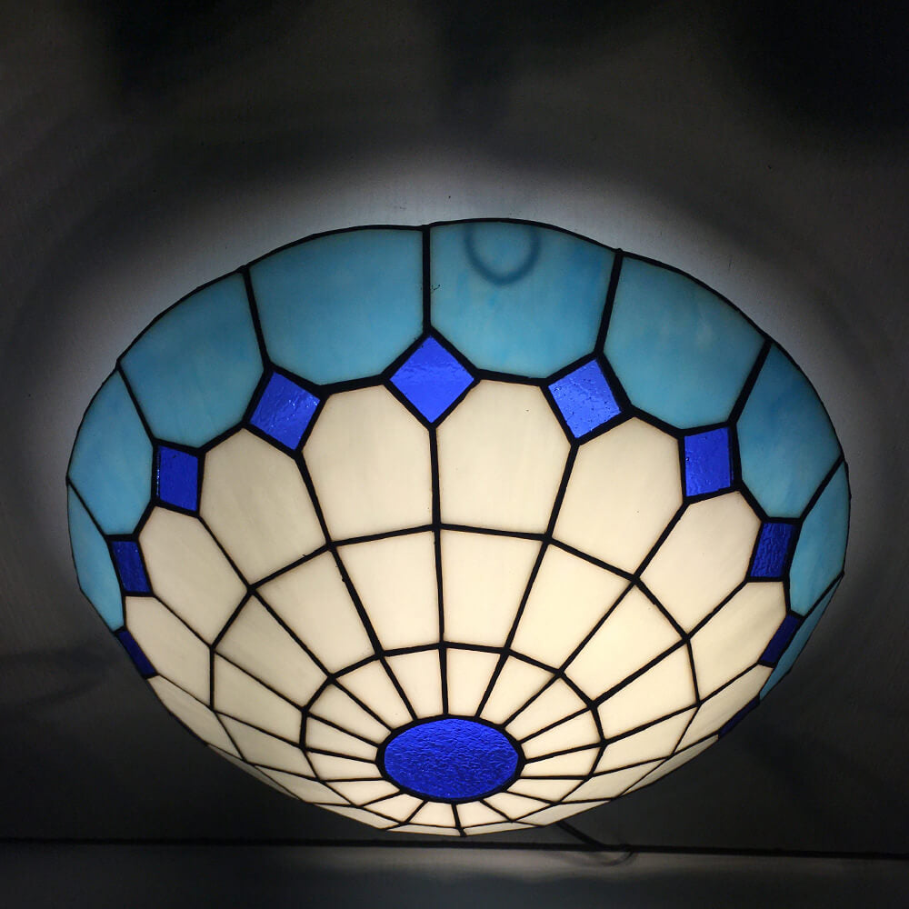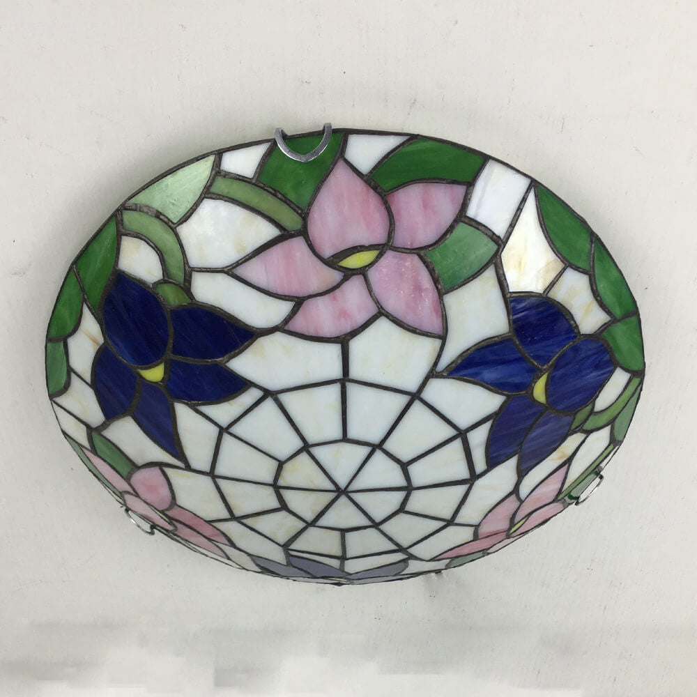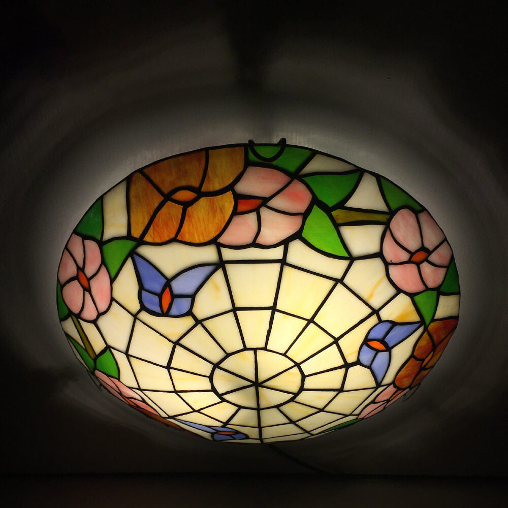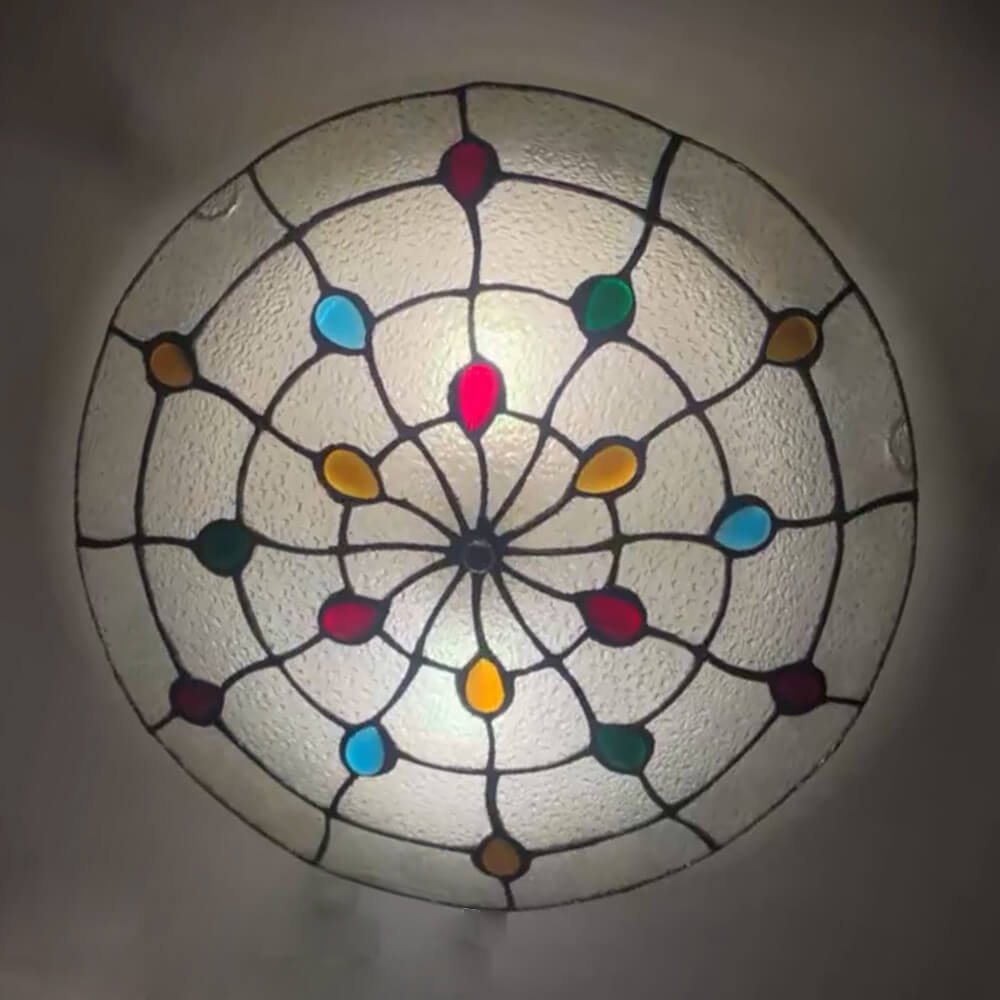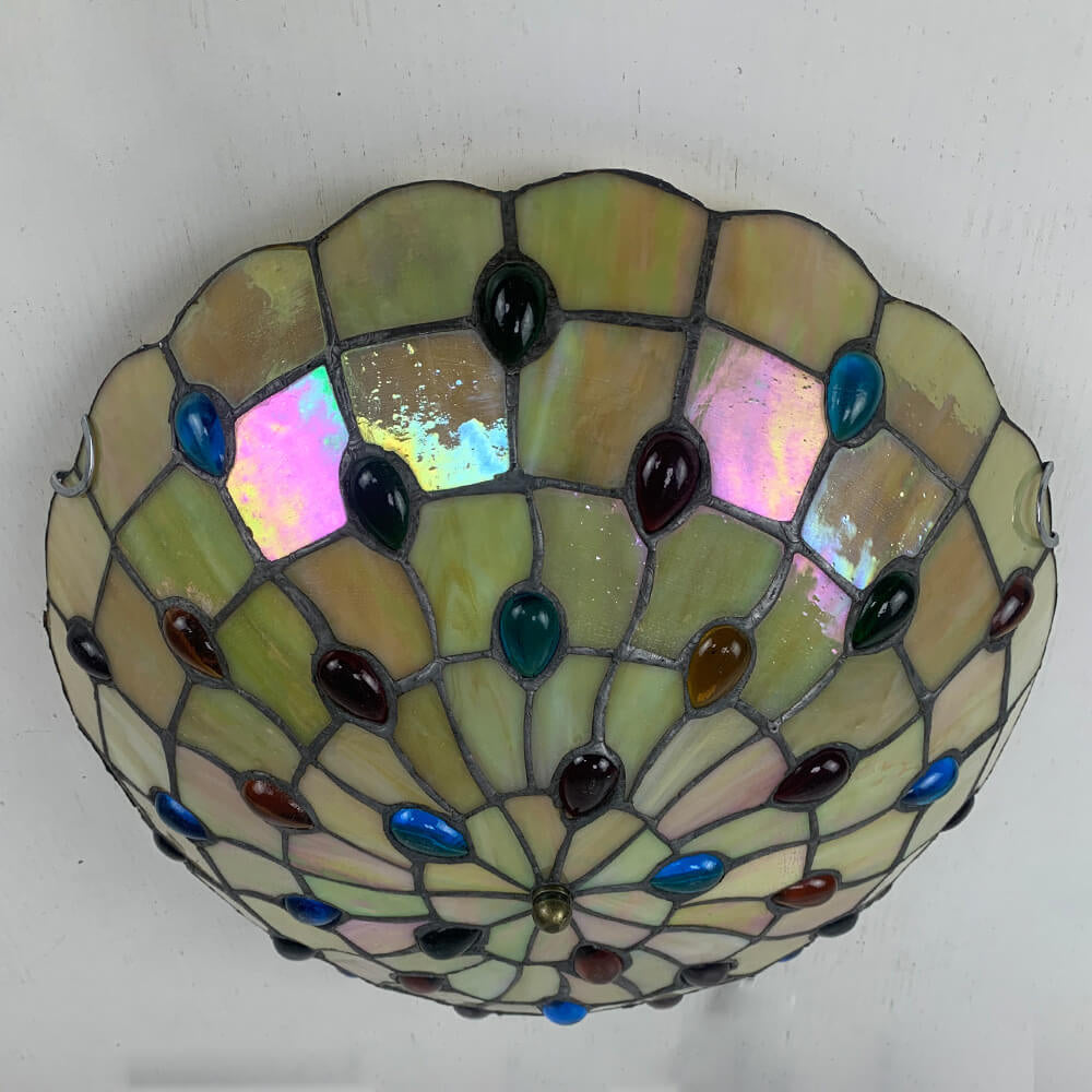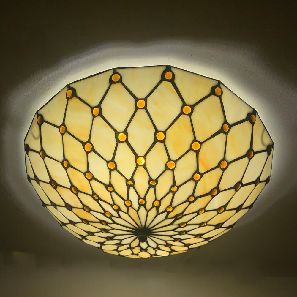 Traditional Tiffany Round Shell Bead Stained Glass 2-Light Flush Mount Ceiling Light For Hallway