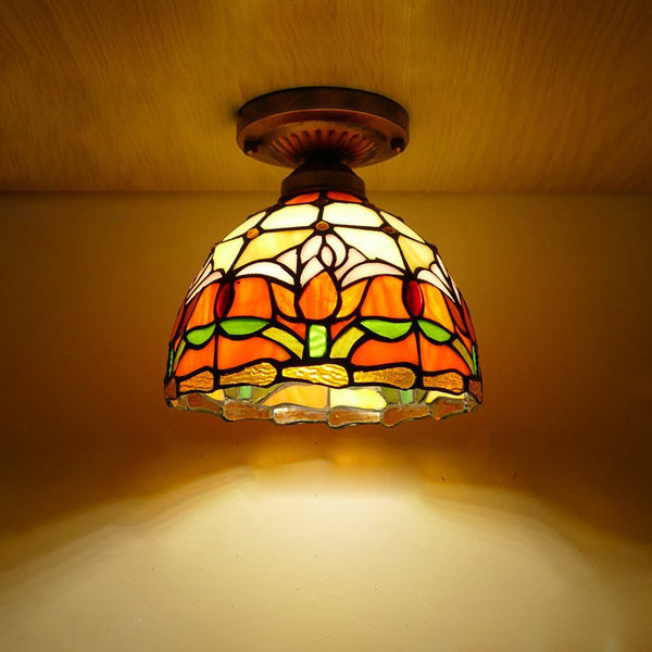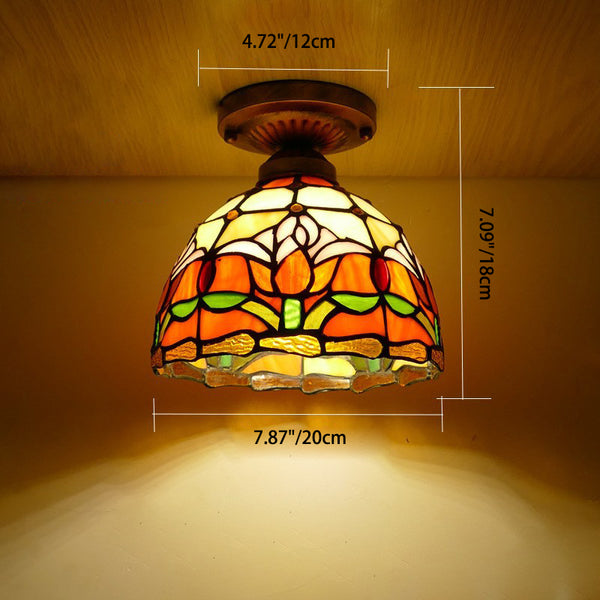 Traditional Tiffany Tulip Stained Glass Iron Dome 1-light Semi-Flush Mount Ceiling Light For Living Room