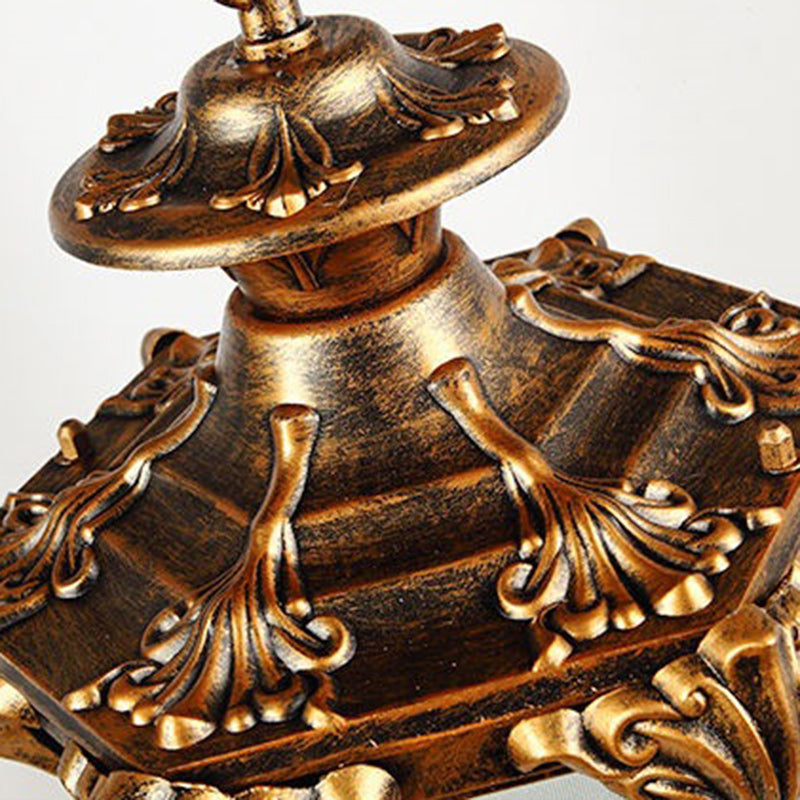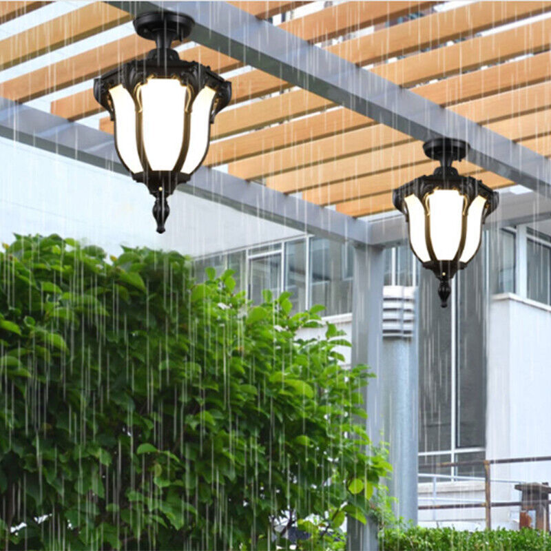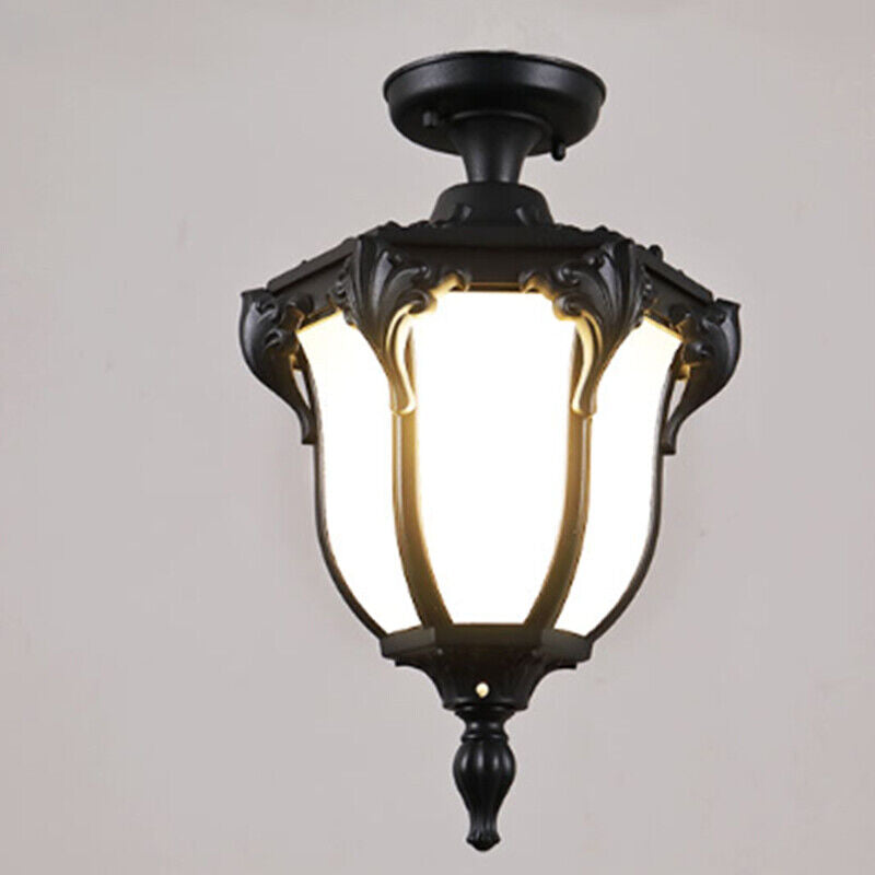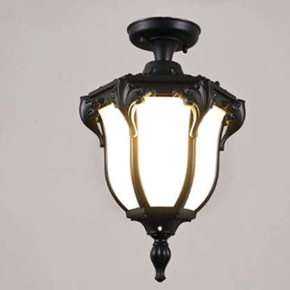 Traditional Vintage Aluminum Polygon Glass 1-Light Waterproof Outdoor Semi-Flush Mount Ceiling Light For Garden