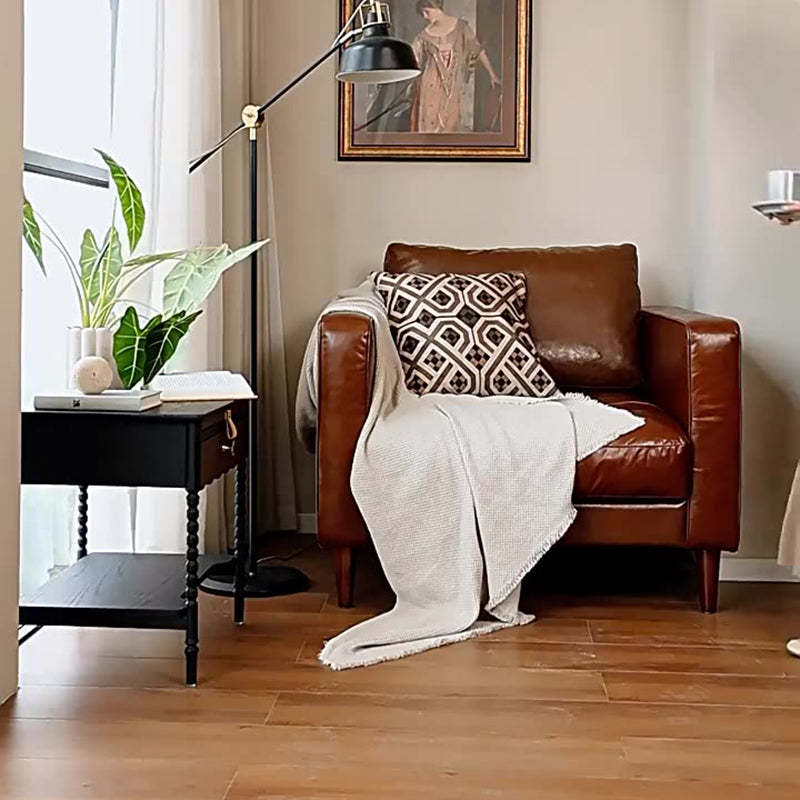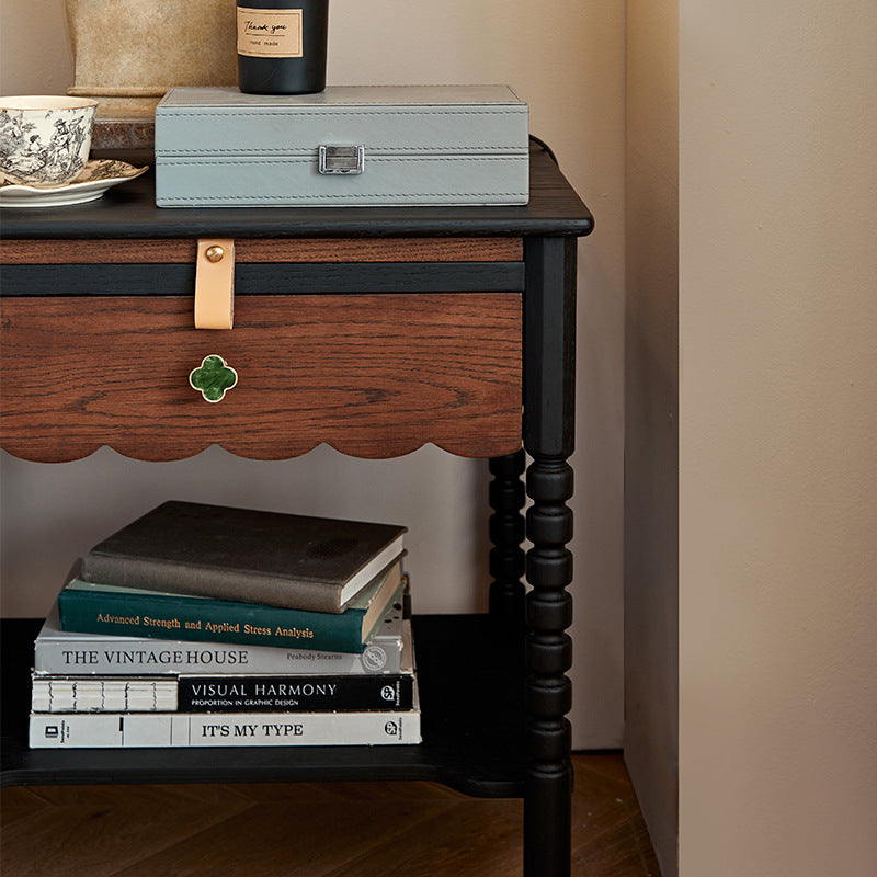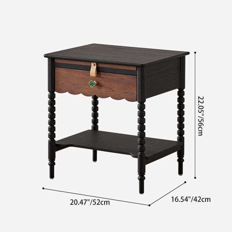 Traditional Vintage Expandable Rectangle Square Red Oak Side Table 1-Drawer For Living Room