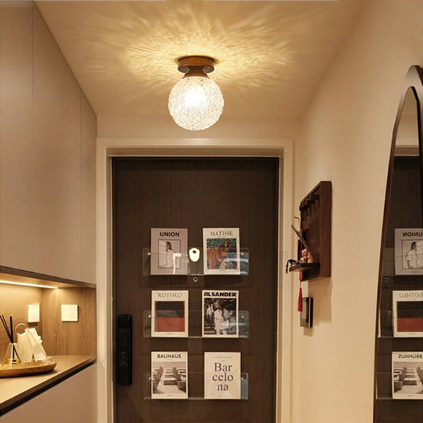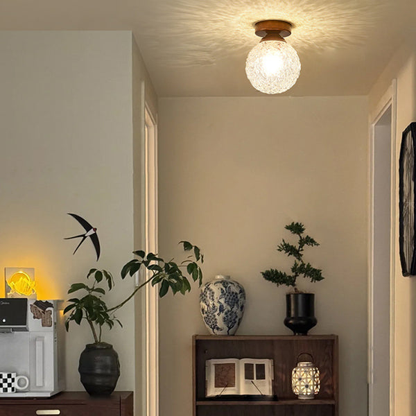 Embrace warm vintage charm with this traditional semi-flush ceiling light. featuring a globe-shaped glass shade and brown metal accents. The single-light design offers soft. even illumination with a mellow glow??ideal for bedrooms. living rooms. or hallway spaces.