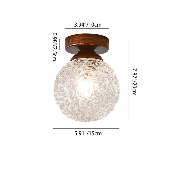 Traditional Vintage Glass Metal Globe Round 1-Light Semi-Flush Mount Ceiling Light For Bedroom & Living Room