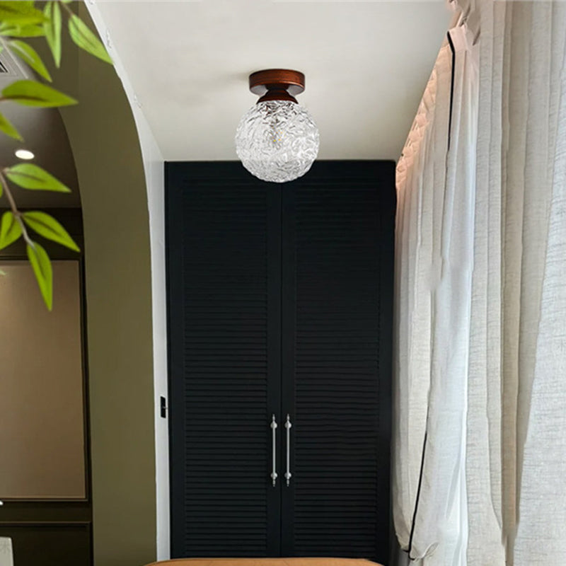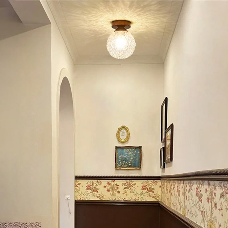 Embrace warm vintage charm with this traditional semi-flush ceiling light. featuring a globe-shaped glass shade and brown metal accents. The single-light design offers soft. even illumination with a mellow glow??ideal for bedrooms. living rooms. or hallway spaces.