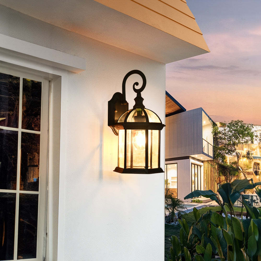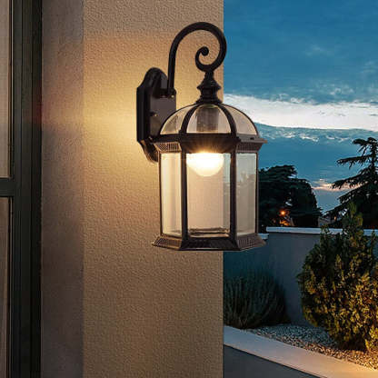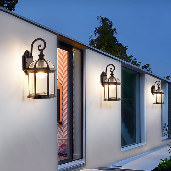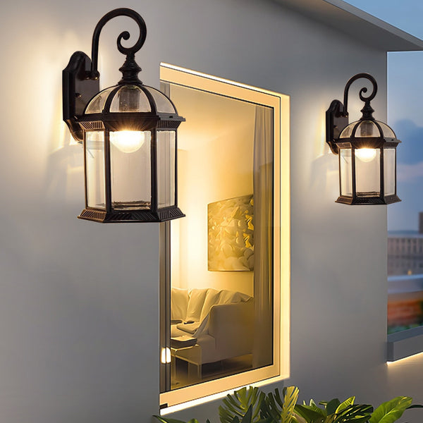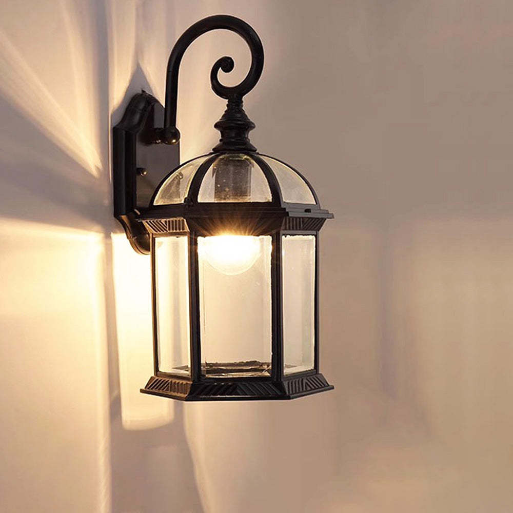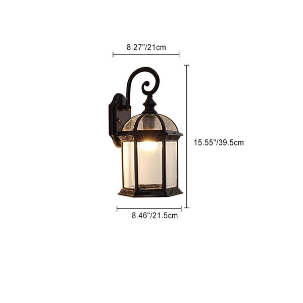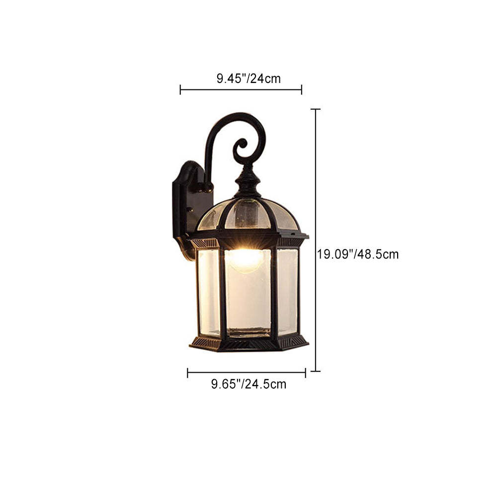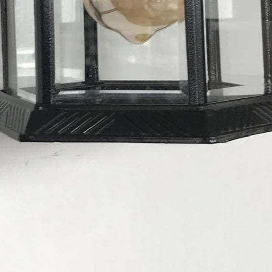 Traditional Vintage Hexagonal Castle Aluminum Glass 1-Light Outdoor Wall Sconce Lamp For Garden