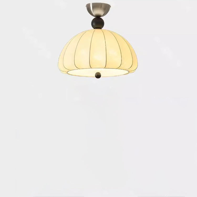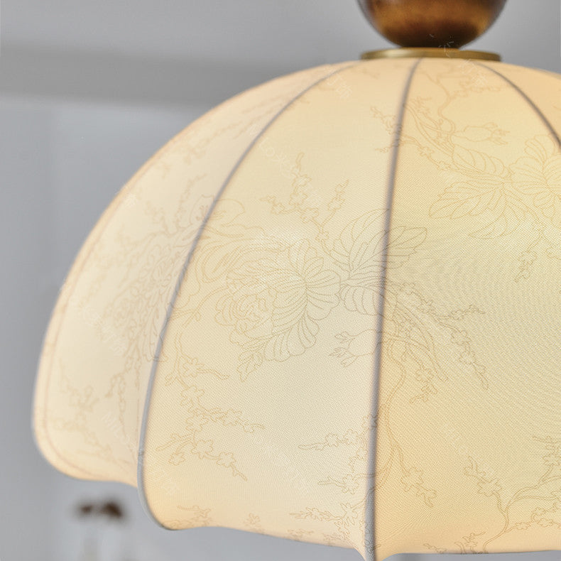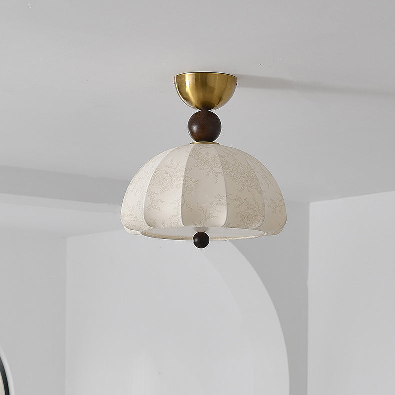 This traditional vintage ceiling light features a semi-circular silhouette with embroidered fabric in beige and wood tones. casting a soft. warm glow. Made of metal. wood. and fabric. it blends nostalgic charm with gentle lighting??perfect for adding a romantic touch to bedrooms or living rooms.