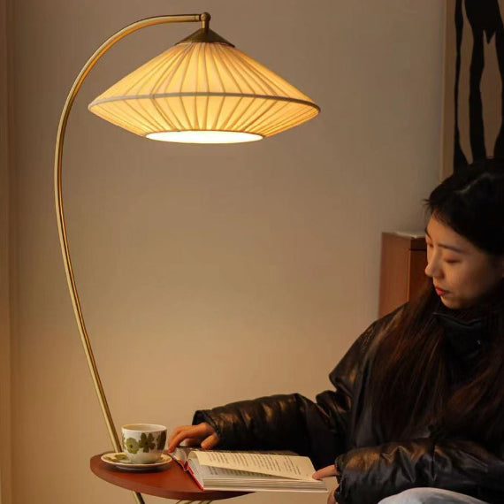 Traditional Vintage Round Cone Table Fabric Iron 1-Light Standing Floor Lamp For Bedroom