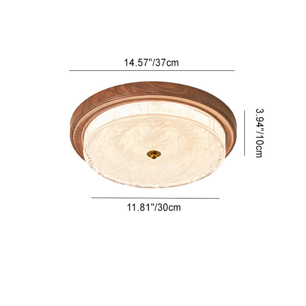 Traditional Vintage Round Metal Glass LED Flush Mount Ceiling Light For Bedroom
