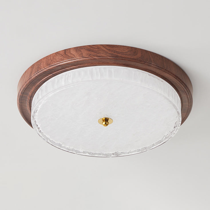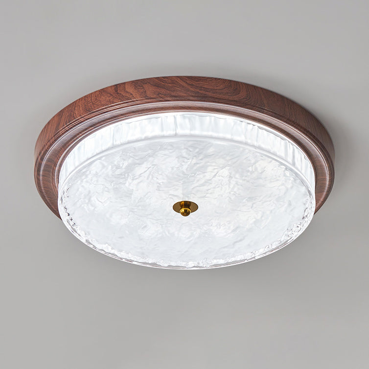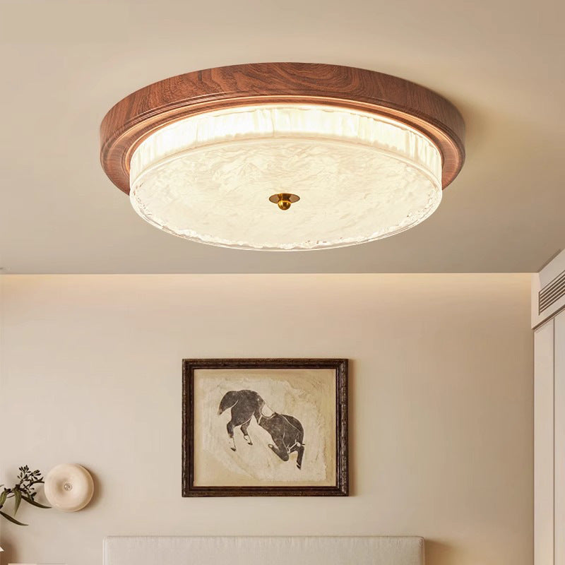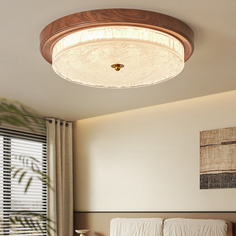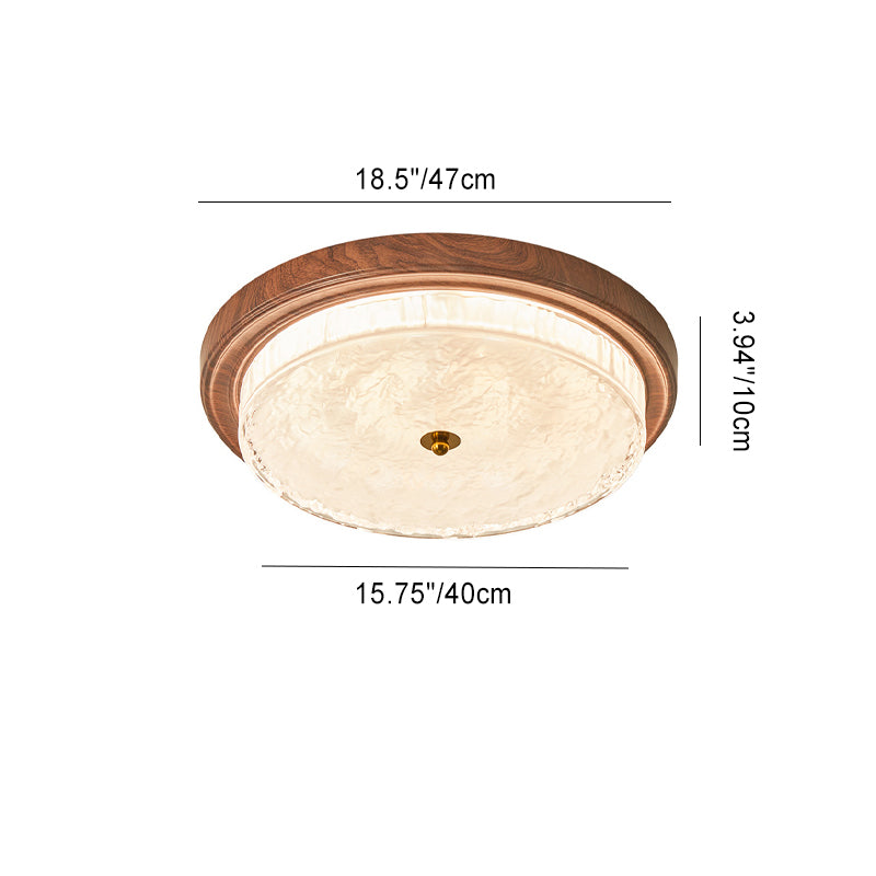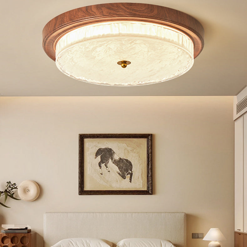 Traditional Vintage Round Metal Glass LED Flush Mount Ceiling Light For Bedroom